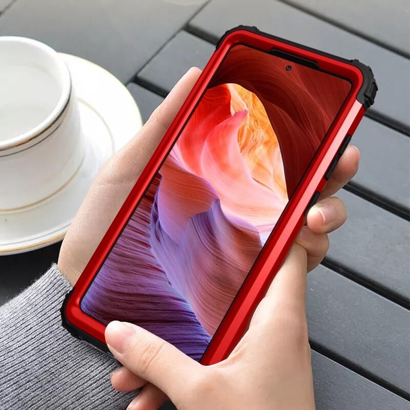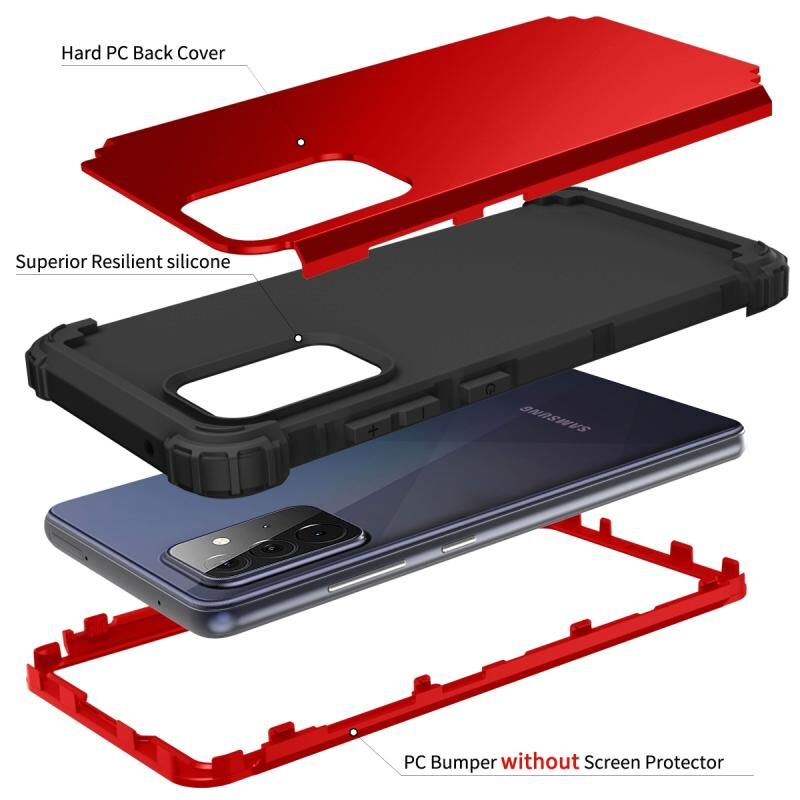 Για Samsung Galaxy A72 4G / 5G PC + σιλικόνη Τρία τεμάχια θήκη αντικραδασμικής προστασίας (Κόκκινο+Μαύρο)