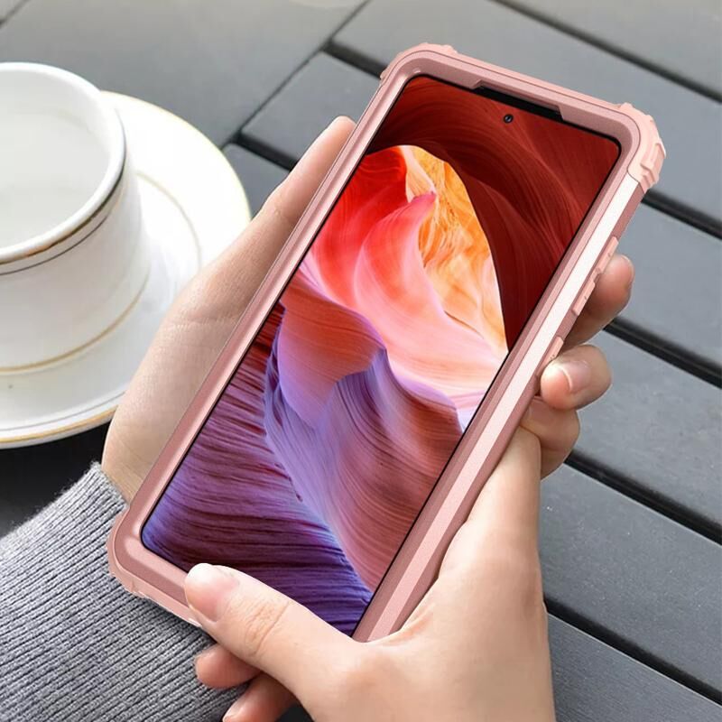 Για το Samsung Galaxy A72 4G / 5G PC + σιλικόνη Τρία τεμάχια θήκη αντικραδασμικής προστασίας (ροζ χρυσό)
