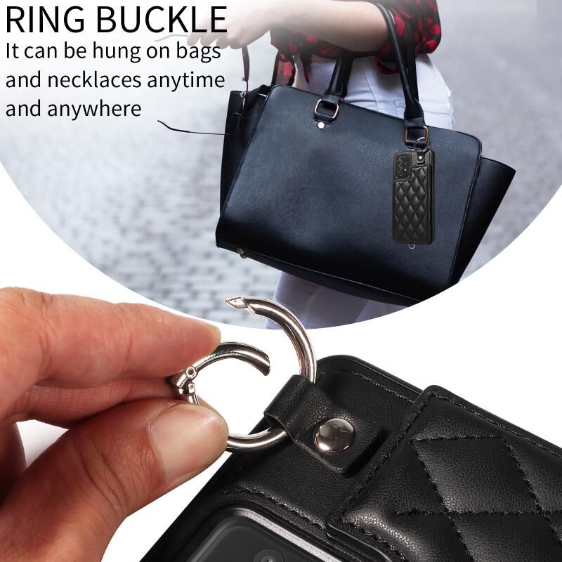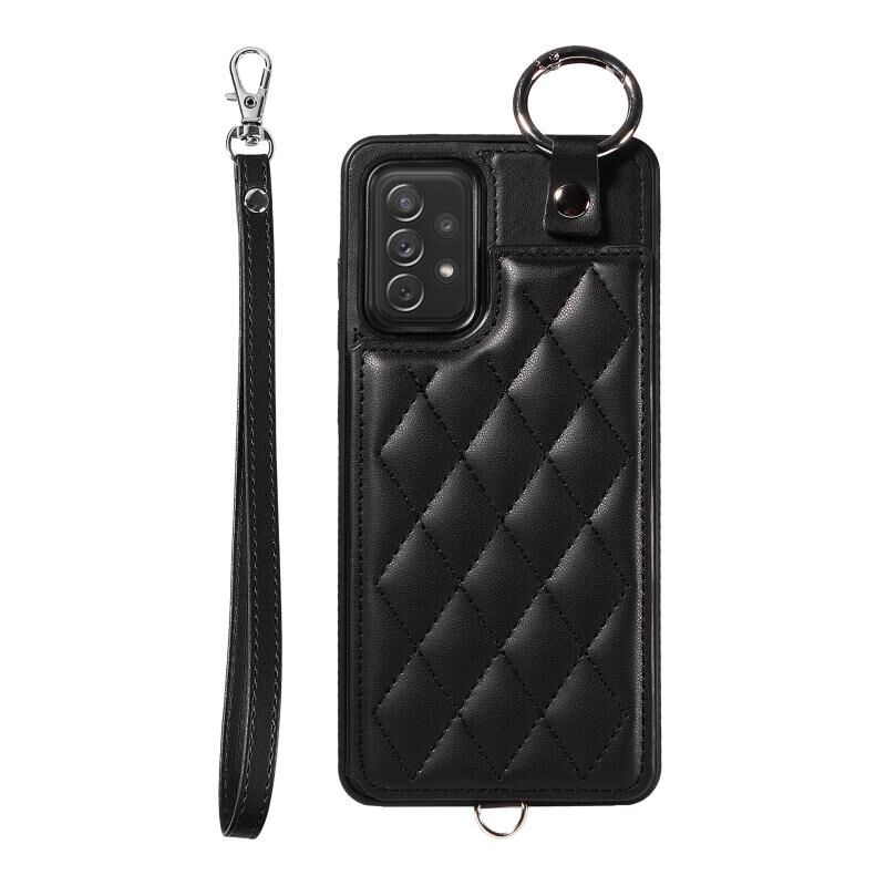 Για Samsung Galaxy A72 4G / 5G Rhombic υφή κάρτα τσάντα τηλέφωνο υπόθεση με σύντομο κορδόνι (μαύρο)