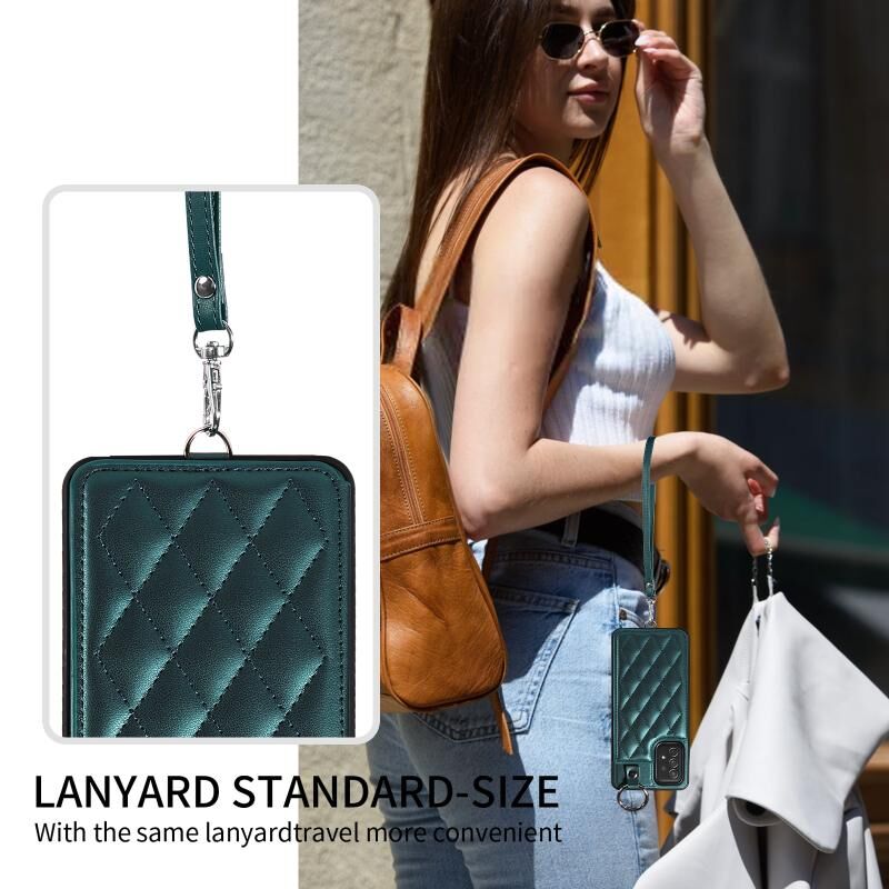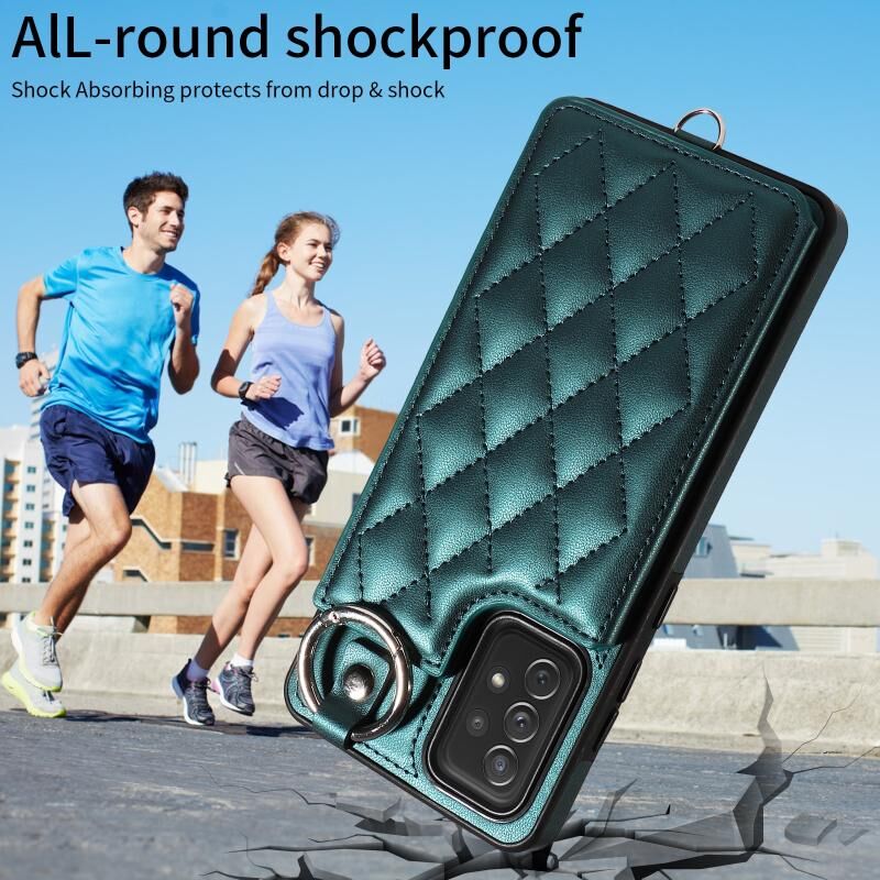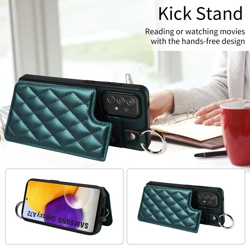 Για Samsung Galaxy A72 4G / 5G Rhombic υφή κάρτα τσάντα υπόθεση τηλεφώνου με σύντομο κορδόνι (πράσινο)