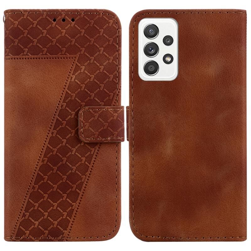 Θήκη τηλεφώνου από ανάγλυφο δέρμα σε σχήμα επτά για Samsung Galaxy A72 4G/5G (Καφέ)