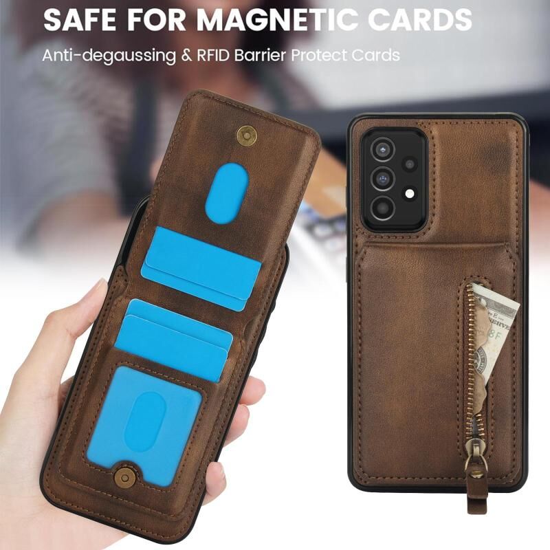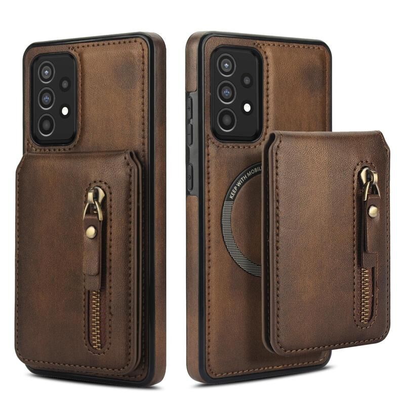 For Samsung Galaxy A72 4G / 5G Zipper Wallet Split MagSafe Leather Back Phone Case(Brown)