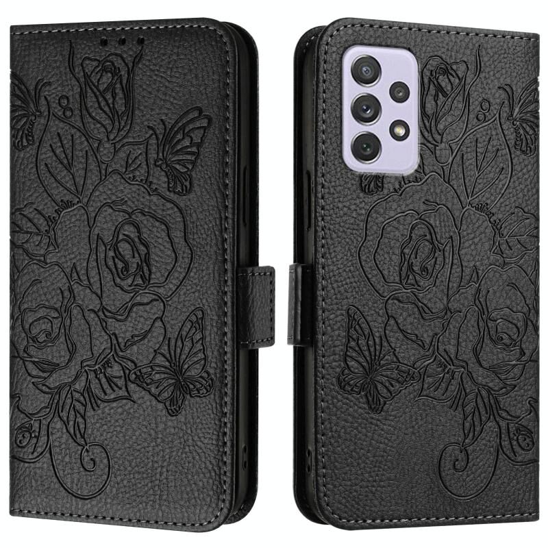 Για Samsung Galaxy A72 4G ανάγλυφο Rose RFID Anti-theft Δερμάτινη θήκη τηλεφώνου (Μαύρο)