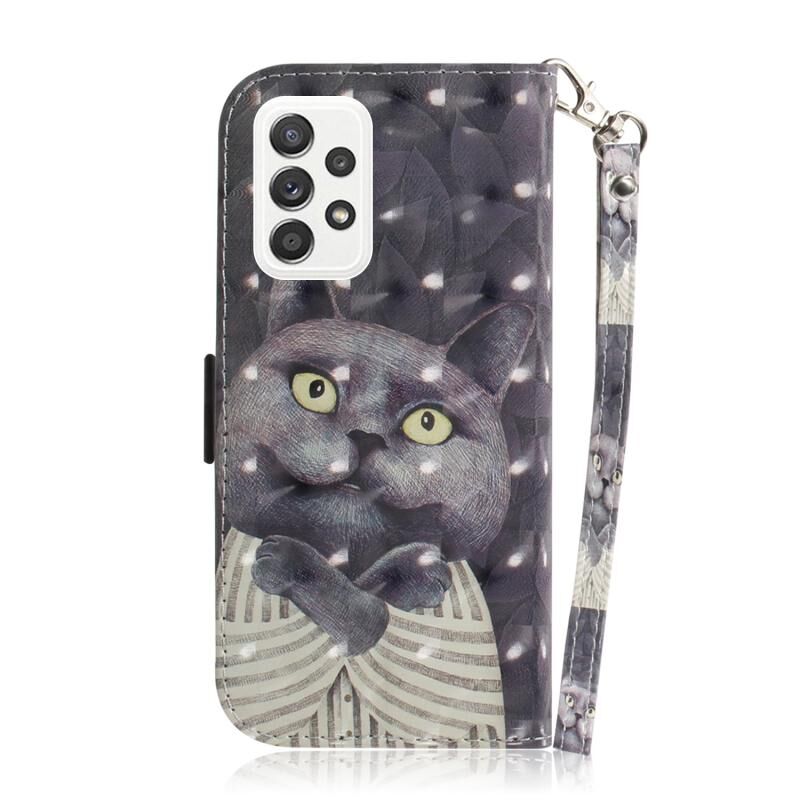 Θήκη δέρματος οριζόντιας αναδίπλωσης με μαγνητική έλξη και τρισδιάστατο σχέδιο για Samsung Galaxy A72 5G / 4G, με βάση στήριξης, θήκη για κάρτες, πορτοφόλι και κορδόνι (Αγκαλιά Γάτας)