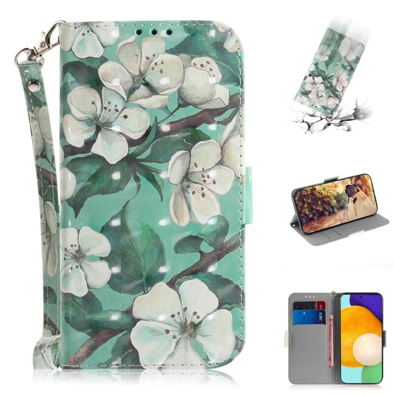 Θήκη δέρματος οριζόντιας αναδίπλωσης με μαγνητική έλξη και τρισδιάστατο σχέδιο για Samsung Galaxy A72 5G / 4G, με βάση στήριξης, θήκη για κάρτες, πορτοφόλι και κορδόνι (Ακουαρέλα Λουλούδια).