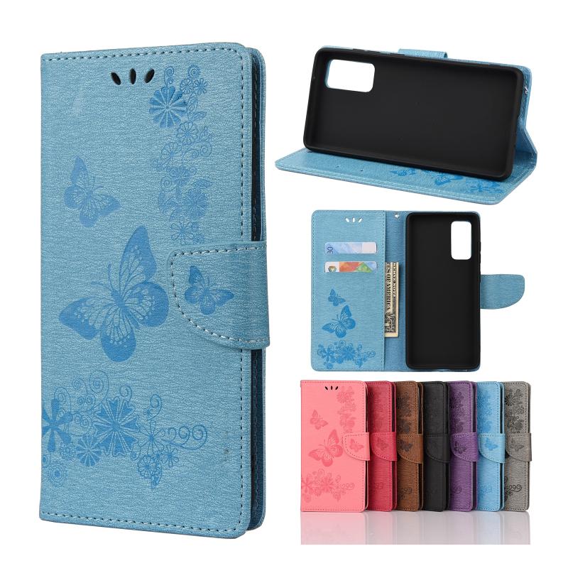 Θήκη δέρματος οριζόντιας αναδίπλωσης με ανάγλυφα σχέδια πεταλούδων για Samsung Galaxy A72 5G / 4G, με βάση & υποδοχές καρτών & πορτοφόλι (Κόκκινο)