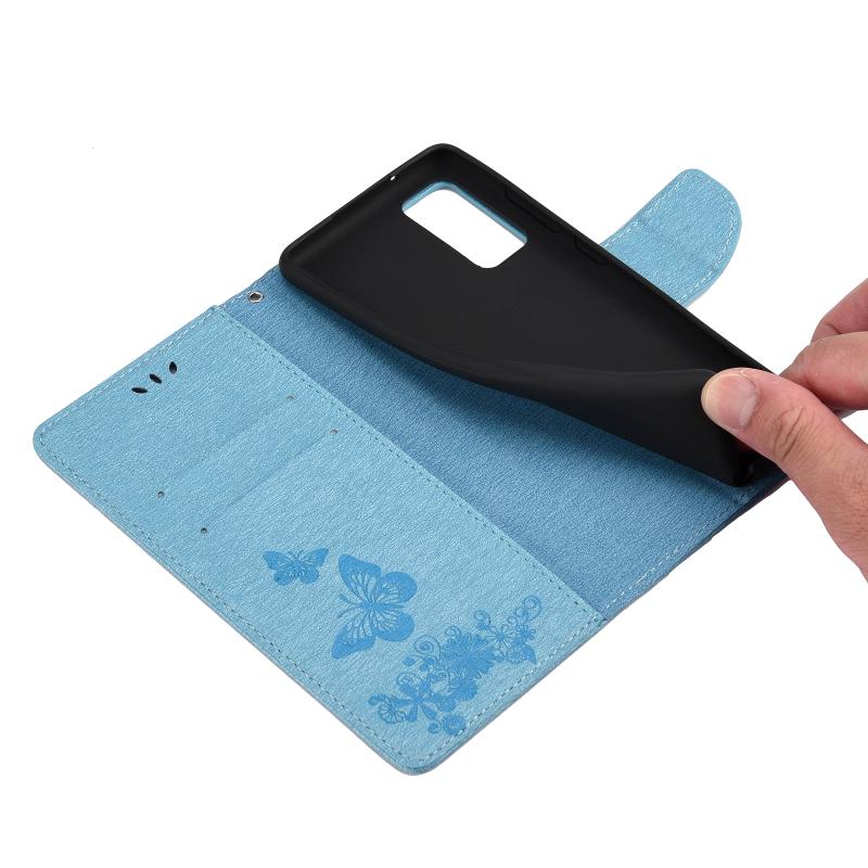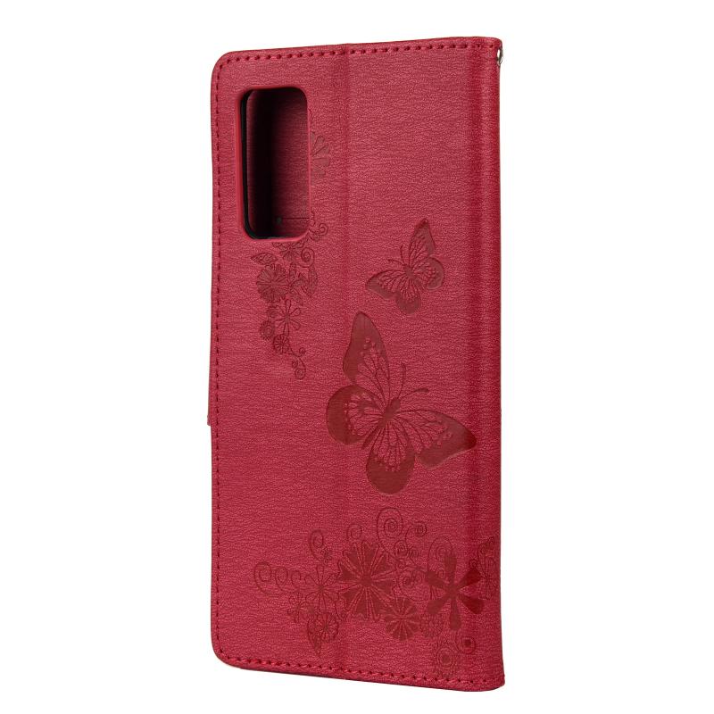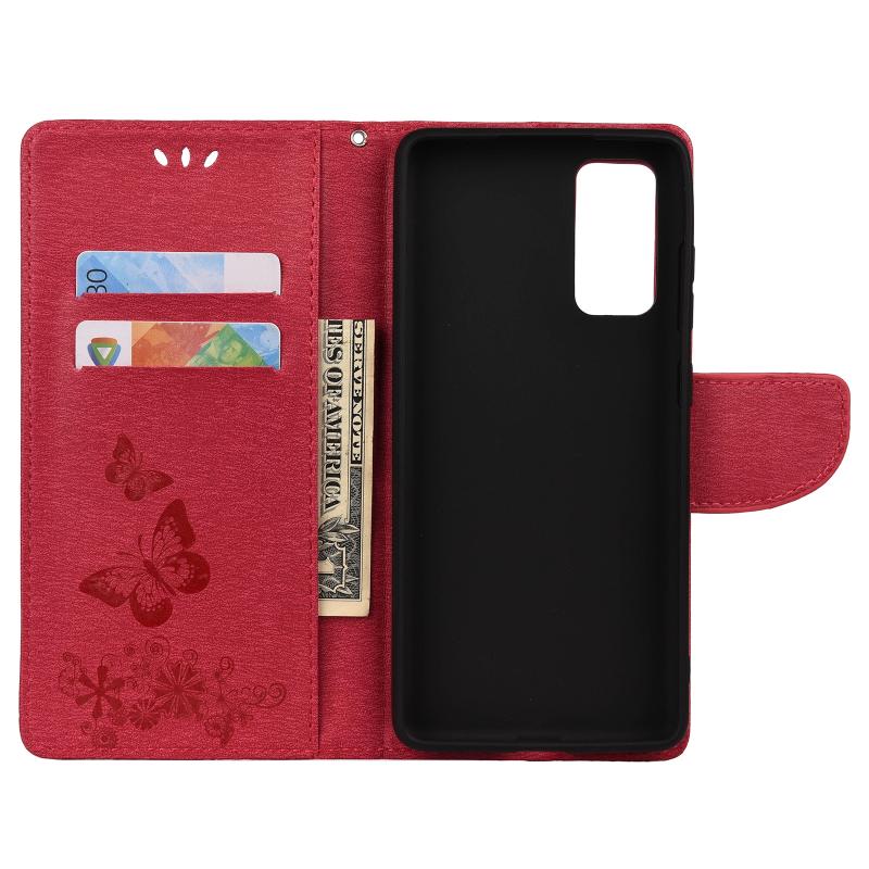 Θήκη δέρματος οριζόντιας αναδίπλωσης με ανάγλυφα σχέδια πεταλούδων για Samsung Galaxy A72 5G / 4G, με βάση & υποδοχές καρτών & πορτοφόλι (Κόκκινο)