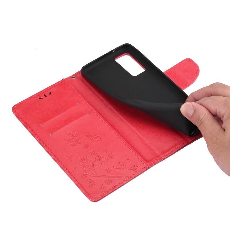 Για Samsung Galaxy A72 5G / 4G πεταλούδα λουλούδι μοτίβο οριζόντια Flip δερμάτινη θήκη με υποδοχή & υποδοχές για κάρτες & πορτοφόλι (κόκκινο)