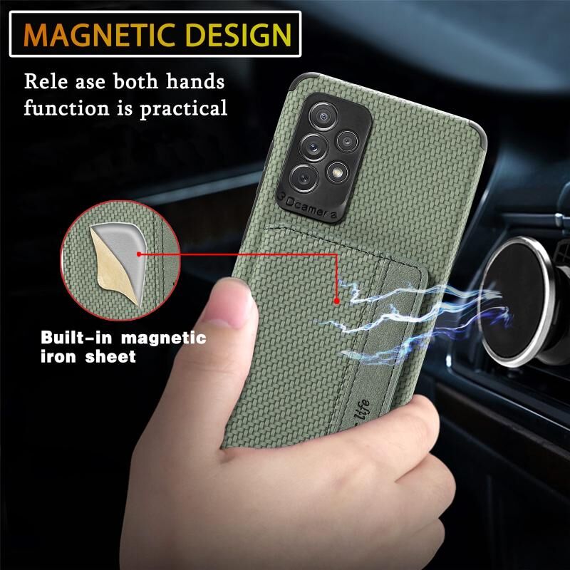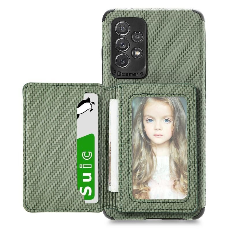 Για Samsung Galaxy A72 5G / 4G Carbon Fiber Μαγνητική τσάντα κάρτα TPU + PU Shockproof πίσω κάλυμμα υπόθεση με θήκη & υποδοχή κάρτας & πλαίσιο φωτογραφιών (πράσινο)