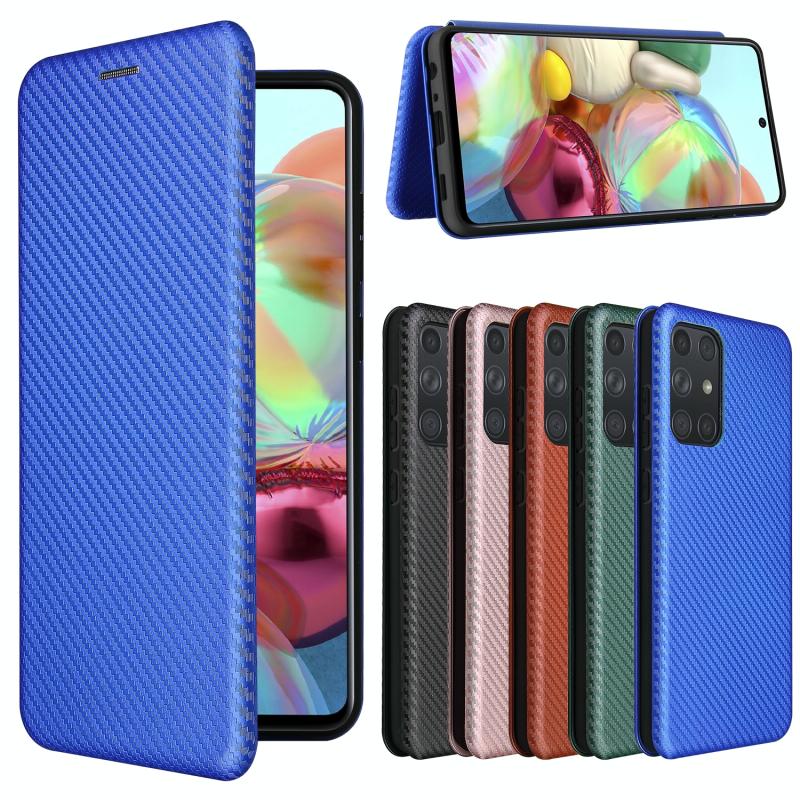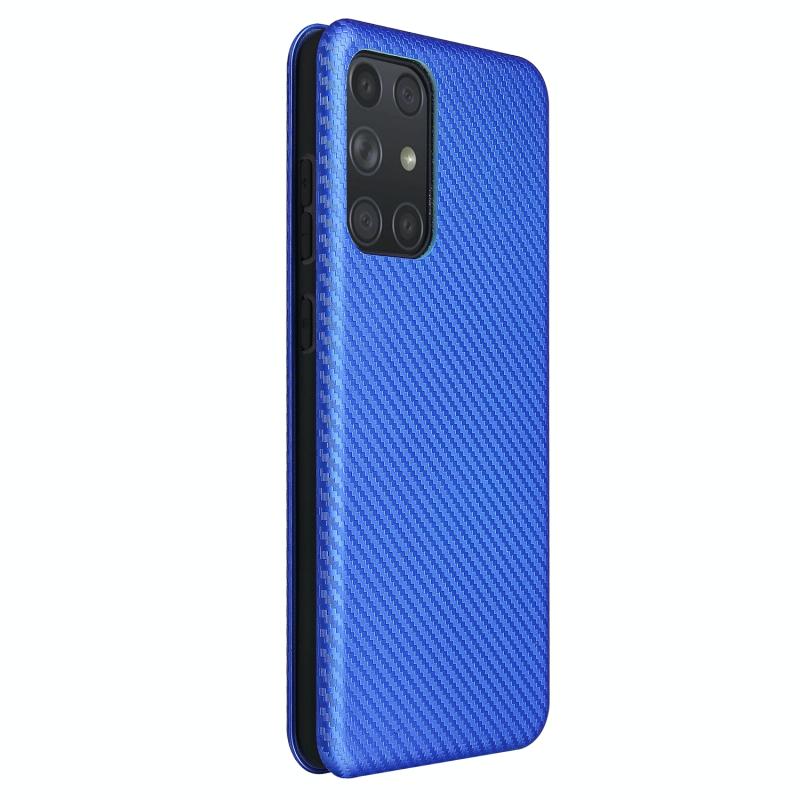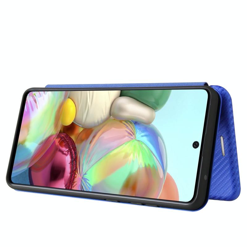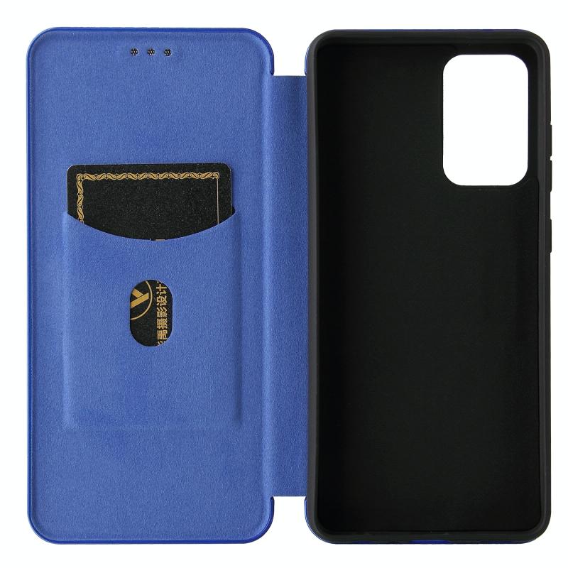 For Samsung Galaxy A72 5G / 4G Carbon Fiber Texture Horizontal Flip TPU + PC + PU Leather Case with Card Slot(Blue)