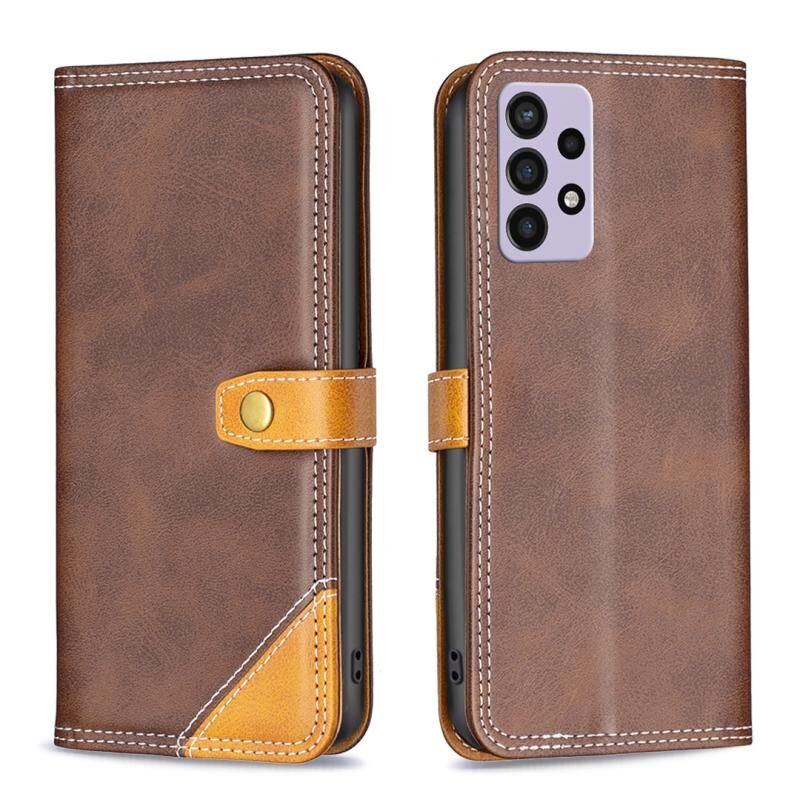 Θήκη τηλεφώνου από δέρμα με διπλή ραφή και αντιστοίχιση χρωμάτων για Samsung Galaxy A72 5G / 4G (Μαύρο)