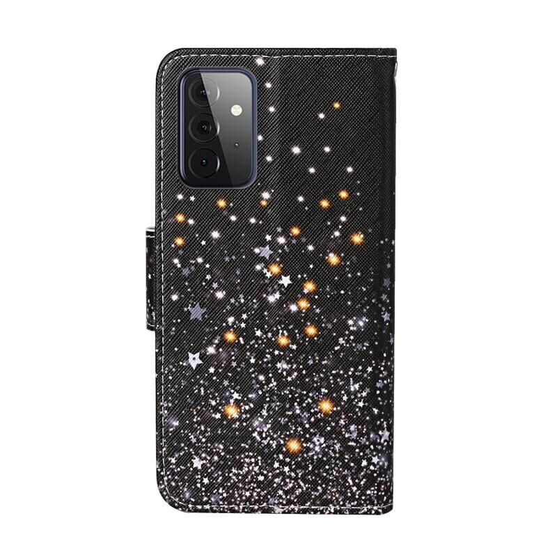 Θήκη δέρματος οριζόντιας αναδίπλωσης με σχέδια ζωγραφικής, χρώματα για Samsung Galaxy A72 5G / 4G με βάση στήριξης & θήκες καρτών & πορτοφόλι & κορδόνι (Μαύρη Γάτα)