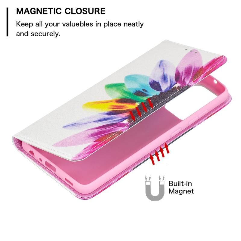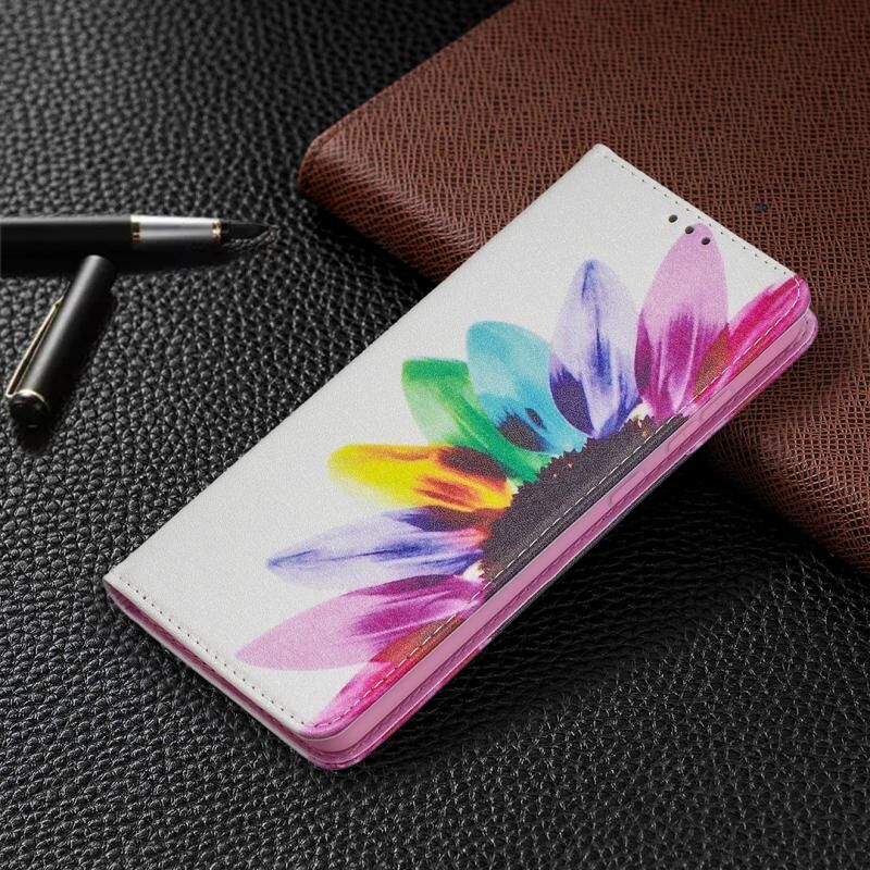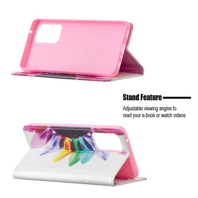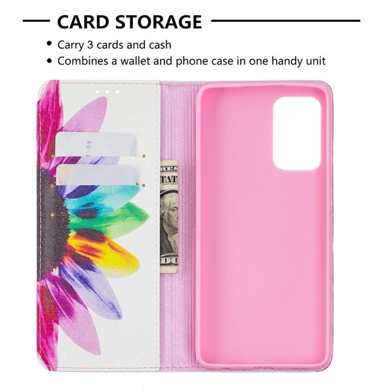 Θήκη Samsung Galaxy A72 5G / 4G με πολύχρωμο σχέδιο, αόρατο μαγνητικό, οριζόντιο flip από δερματίνη PU με βάση & θήκες για κάρτες & πορτοφόλι (Ηλίανθος)