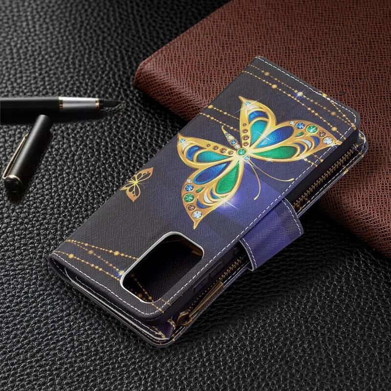 Θήκη δέρματος οριζόντιας αναδίπλωσης με φερμουάρ και σχέδιο ζωγραφικής για Samsung Galaxy A72 5G / 4G με βάση για κάρτες & πορτοφόλι (Μεγάλη Πεταλούδα)