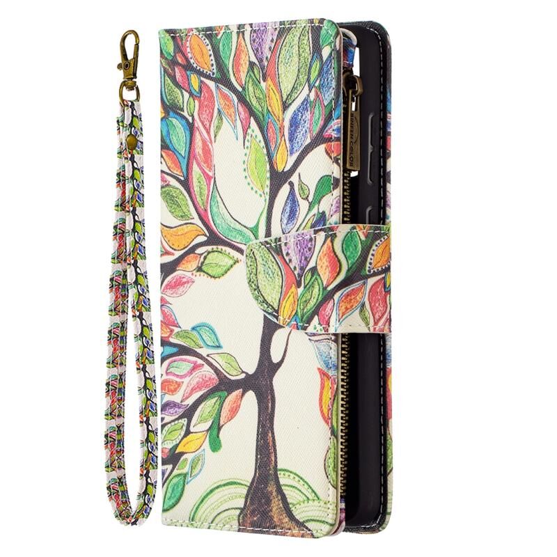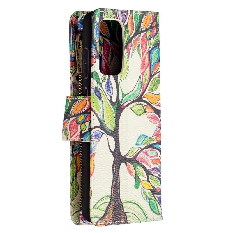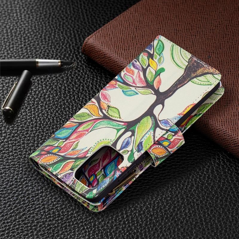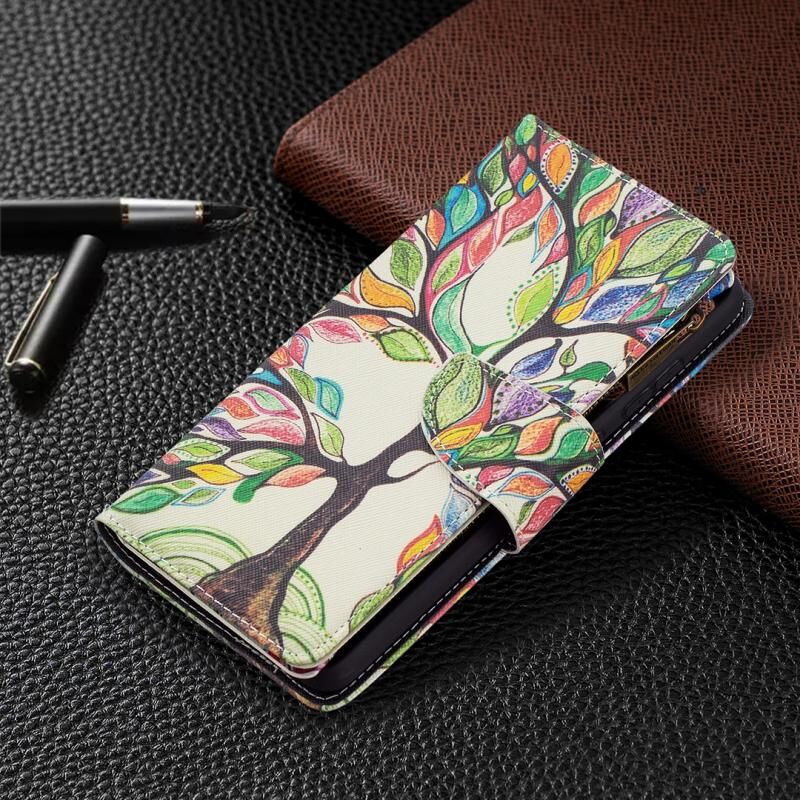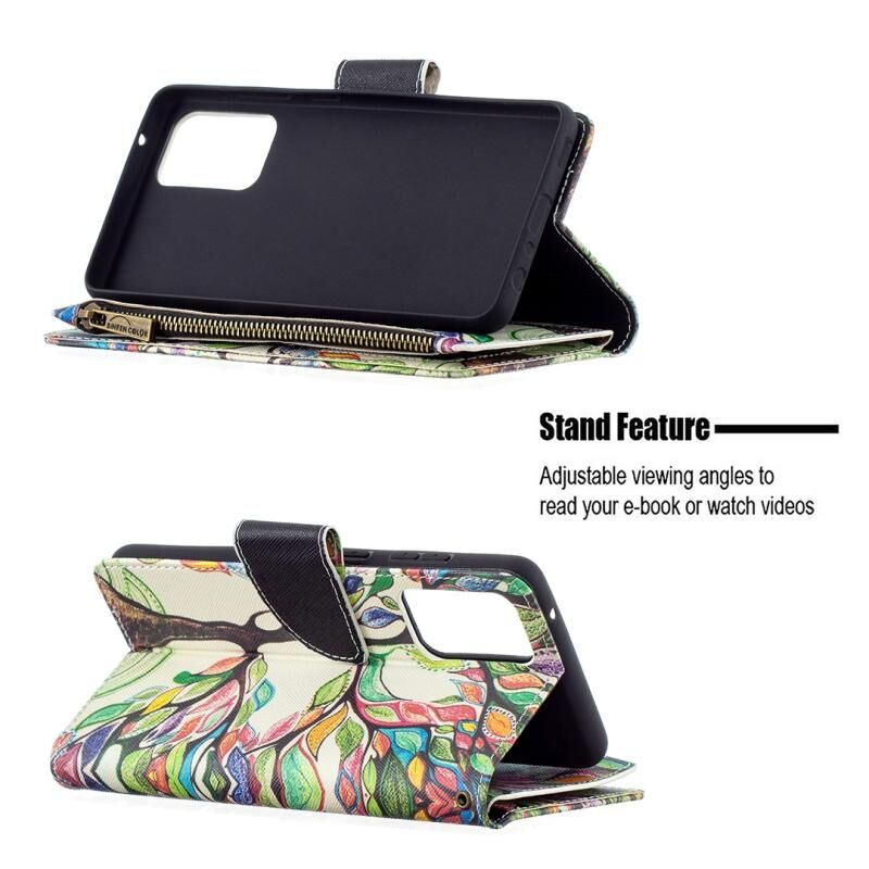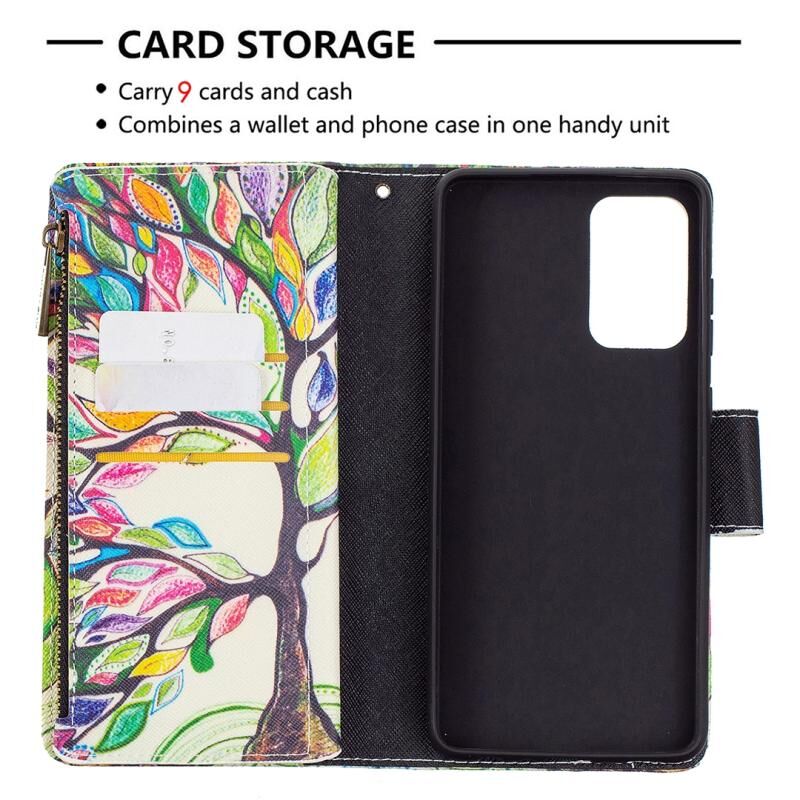 Θήκη δέρματος οριζόντιας αναδίπλωσης με φερμουάρ και σχέδια για Samsung Galaxy A72 5G / 4G, με βάση & θήκες καρτών & πορτοφόλι (Δέντρο)