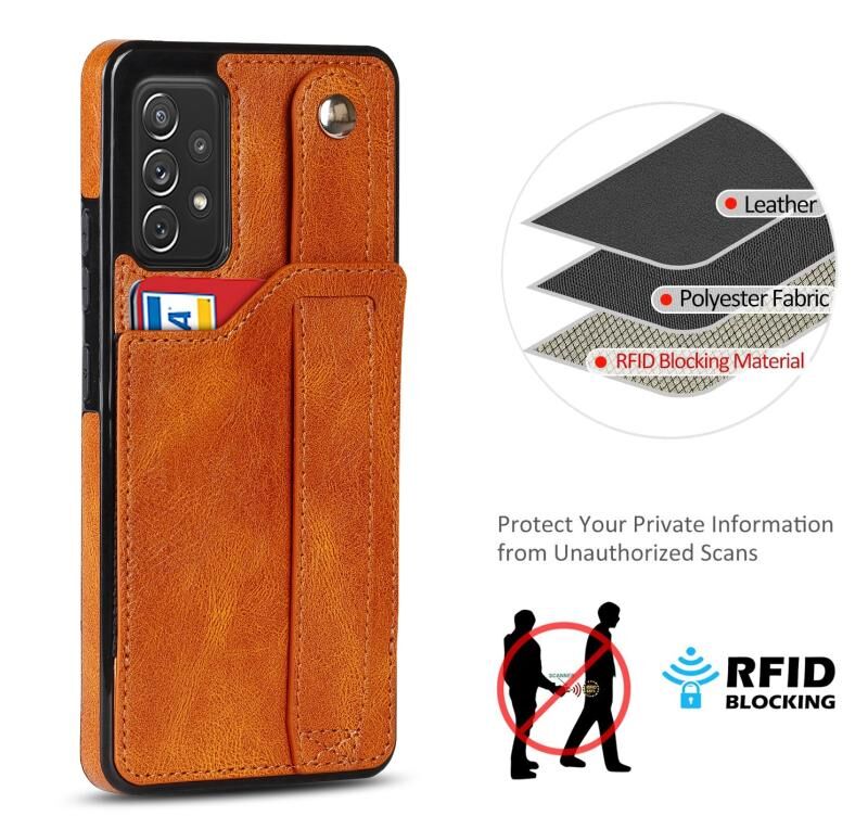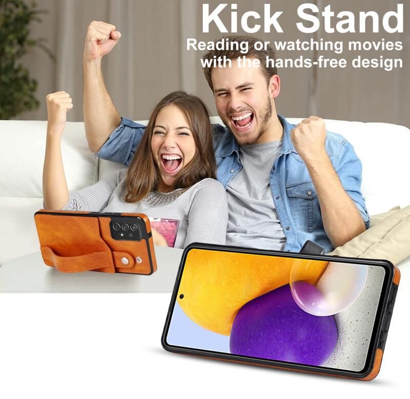 Για το Samsung Galaxy A72 5G / 4G Crazy Horse υφή Shockproof TPU + PU δέρμα υπόθεση με υποδοχή κάρτας & στήριγμα λουράκι καρπού (κίτρινο)