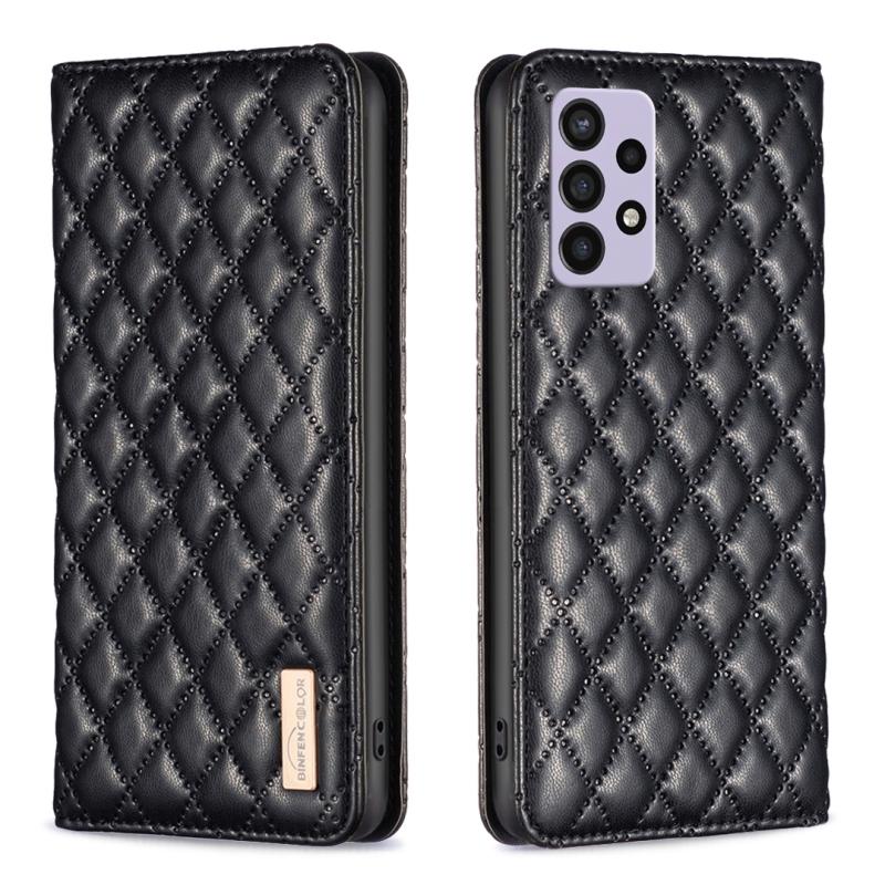 Θήκη τηλεφώνου Samsung Galaxy A72 5G / 4G από δέρμα με μαγνητικό κλείσιμο σε σχέδιο διαμαντένιο πλέγμα (Μαύρο)