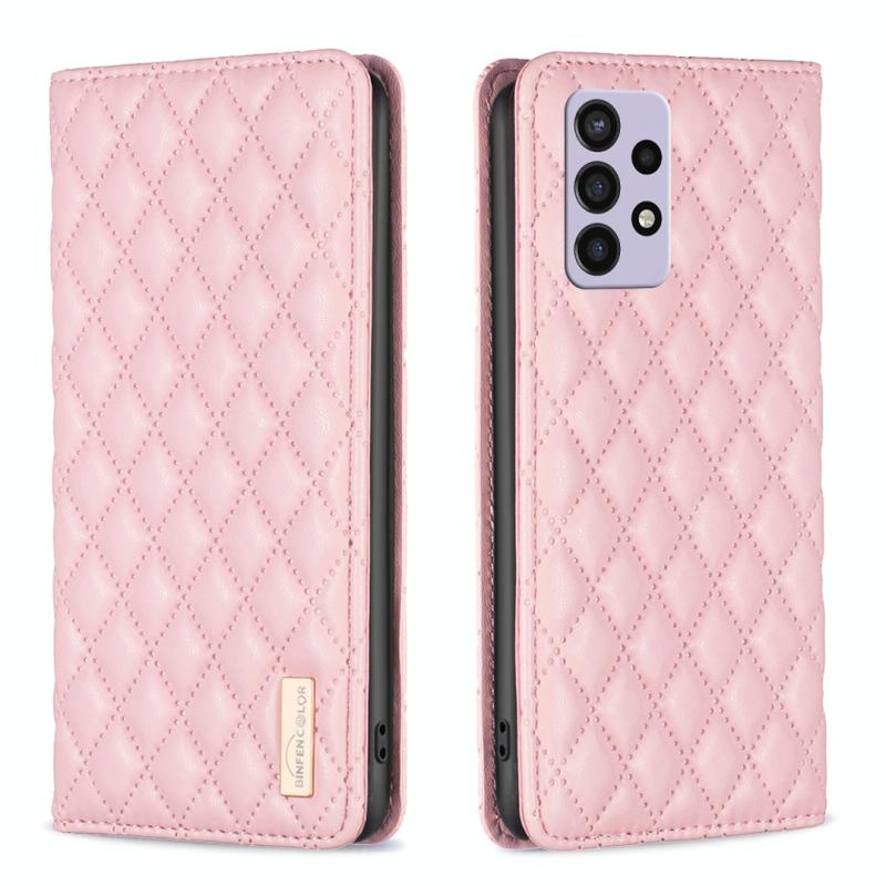 Θήκη τηλεφώνου Samsung Galaxy A72 5G / 4G από δέρμα με μαγνητικό κλείσιμο σε ροζ χρώμα (Diamond Lattice).
