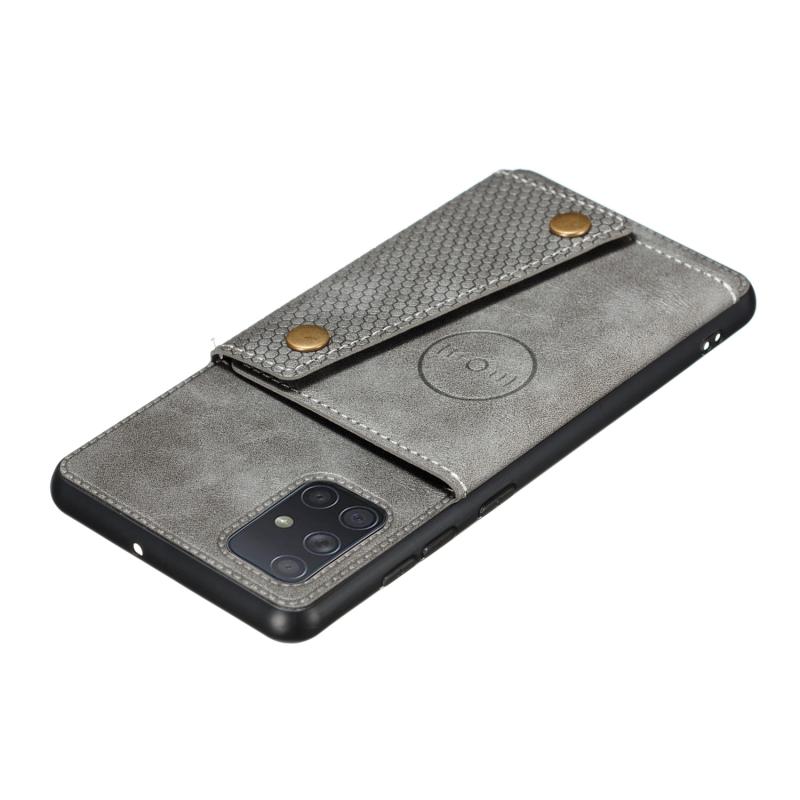 Θήκη προστασίας με μαγνητικό κούμπωμα, διπλής αγκράφας, από PU + TPU ανθεκτική σε κρούσεις για Samsung Galaxy A72 5G / 4G με υποδοχή κάρτας & βάση (Μαύρο)