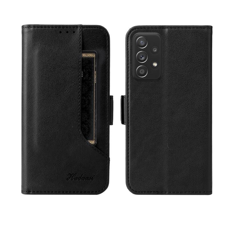 Για το Samsung Galaxy A72 5G / 4G Διπλή πόρπη κάρτα πορτοφόλι πορτοφόλι Calf δέρμα τηλέφωνο υπόθεση (Μαύρο)