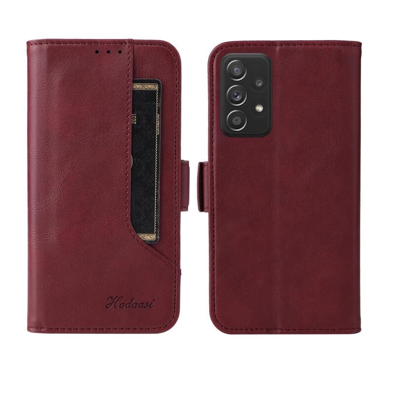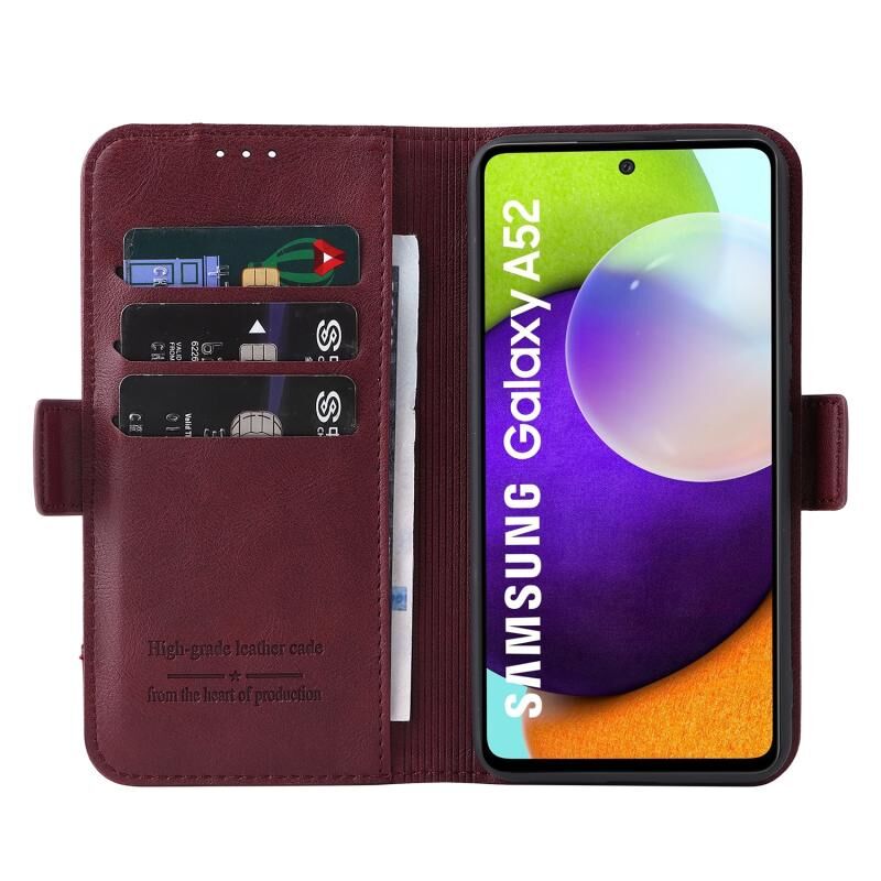 Για Samsung Galaxy A72 5G / 4G Dual Πόρπη κάρτα πορτοφόλι Calf δέρμα τηλέφωνο υπόθεση (κόκκινο κρασί)