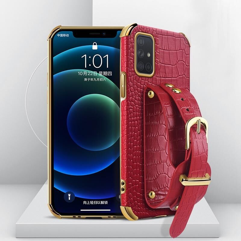 Για Samsung Galaxy A72 5G/4G Electroplated TPU Crocodile Pattern Leather Case με λουράκι καρπού (Κόκκινο)