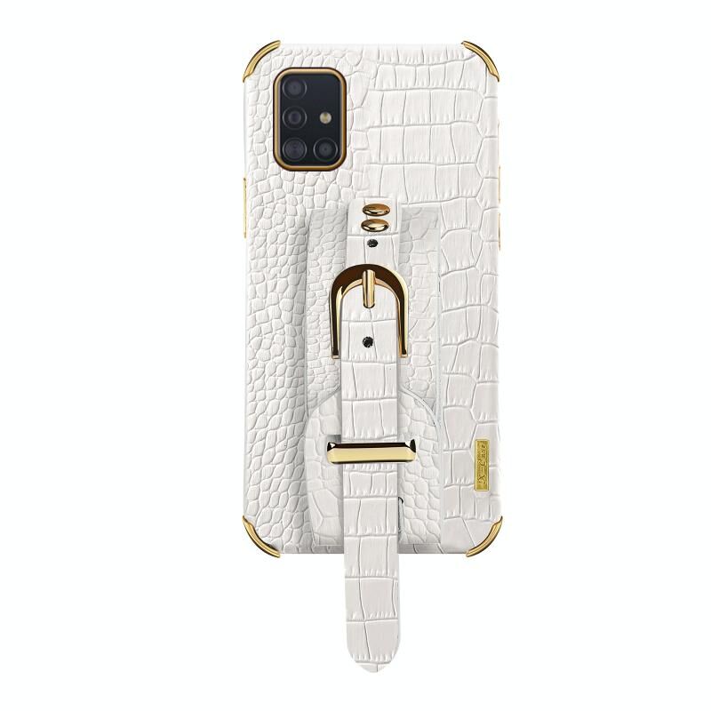 Για Samsung Galaxy A72 5G/4G Electroplated TPU Crocodile Pattern Leather Case με λουράκι καρπού (Λευκό)