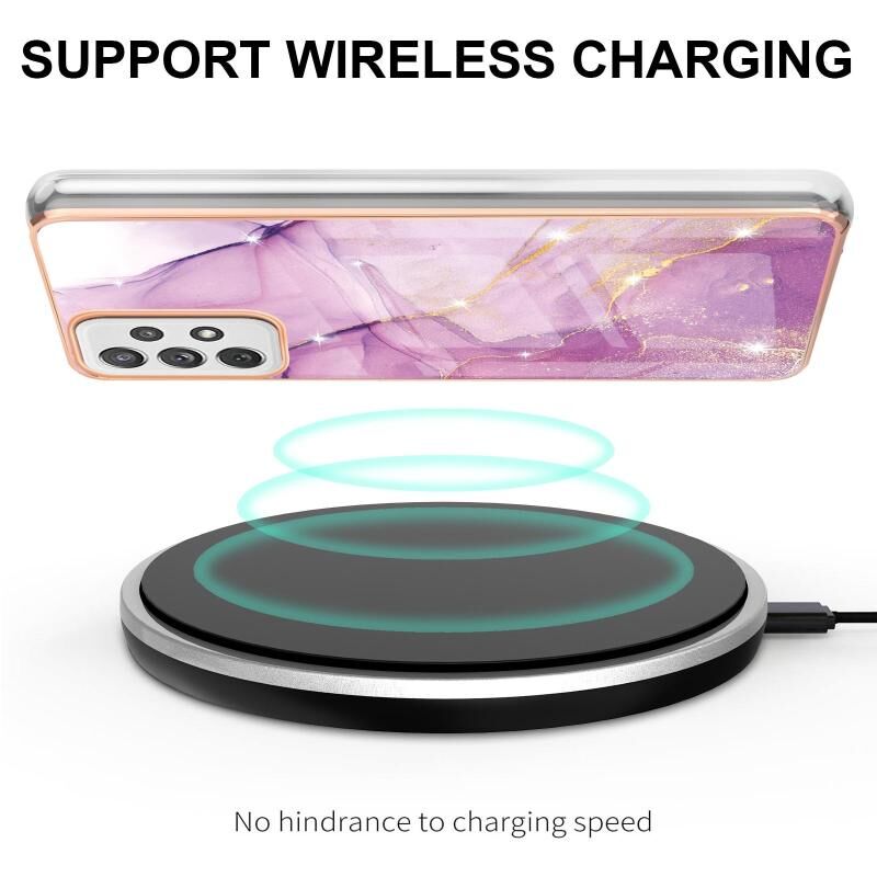Θήκη προστασίας για Samsung Galaxy A72 5G / 4G με επιμετάλλωση, σχέδιο μαρμάρου, διπλής όψης IMD TPU αντικραδασμική (Μωβ 001)