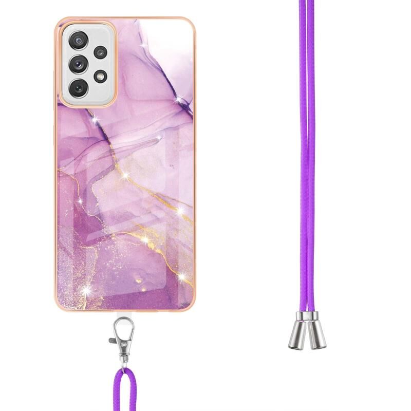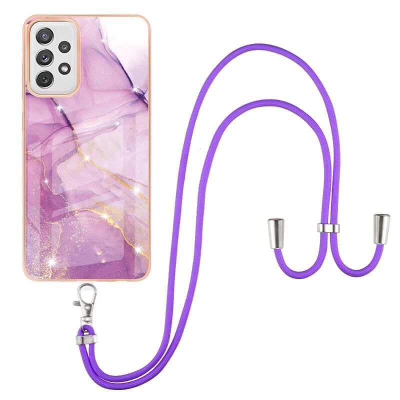 Θήκη προστασίας IMD TPU με μαρμάρινο σχέδιο και ηλεκτρολυτική επικάλυψη για Samsung Galaxy A72 5G / 4G με κορδόνι λαιμού (Μωβ 001)