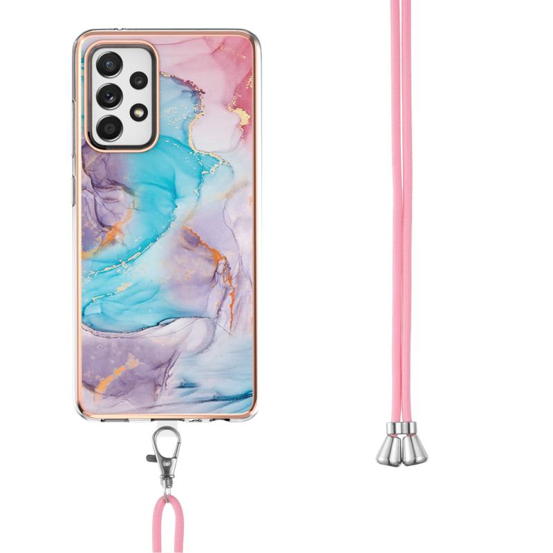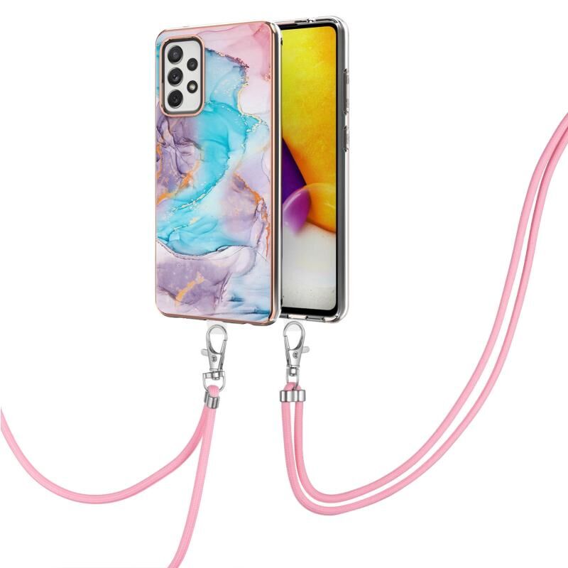 Θήκη προστασίας IMD TPU με ηλεκτρολυτικό σχέδιο για Samsung Galaxy A72 5G / 4G, με κορδόνι λαιμού (Γαλαξιακό Μπλε Μάρμαρο)
