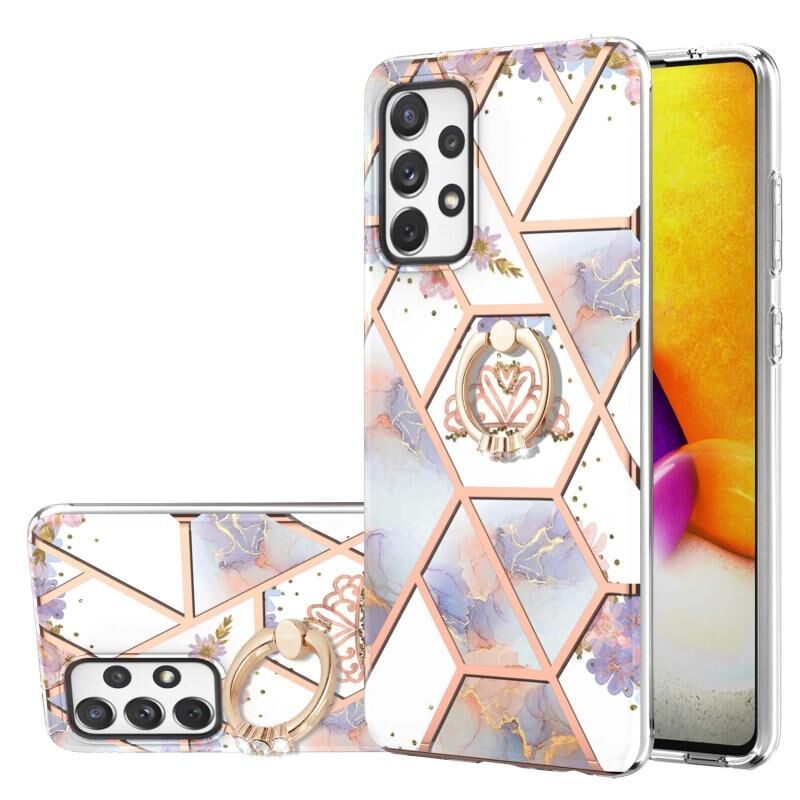 Θήκη προστασίας TPU με ηλεκτρολυτική επιμετάλλωση, συνδυασμό μαρμάρου και λουλουδιών, αντικραδασμική για Samsung Galaxy A72 5G / 4G με δαχτυλίδι στήριξης από ρητίνη (Imperial Crown).