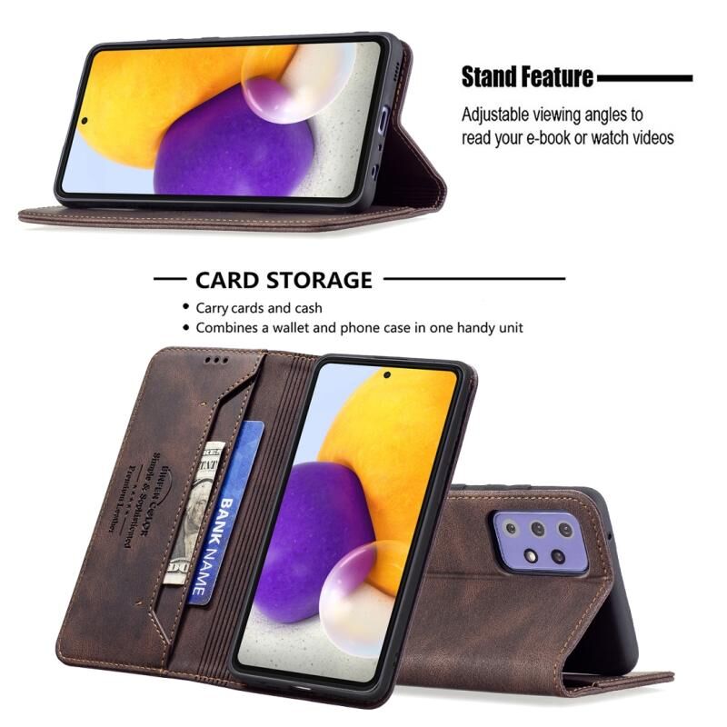 Για Samsung Galaxy A72 5G / 4G Μαγνητικό RFID Blocking Anti-Theft Δερμάτινη θήκη με θήκη & υποδοχές για κάρτες & πορτοφόλι (καφέ)