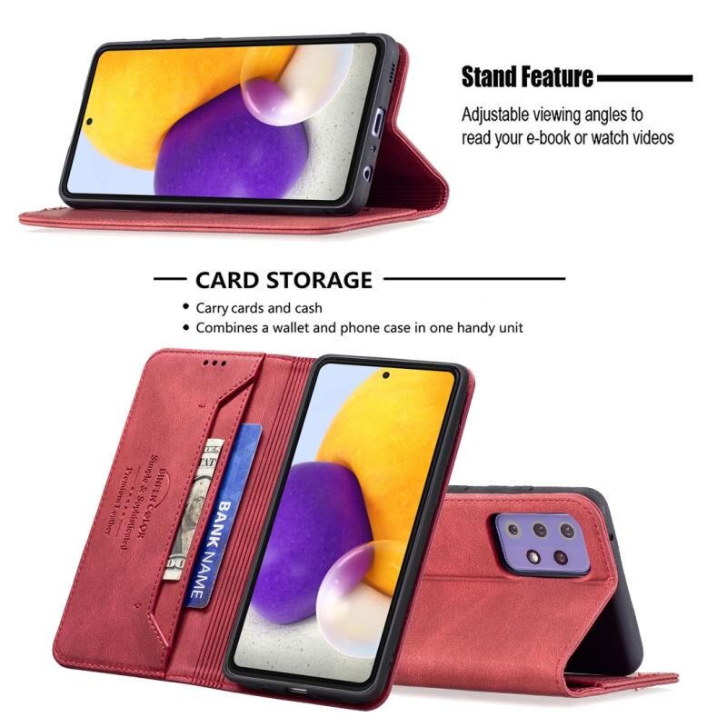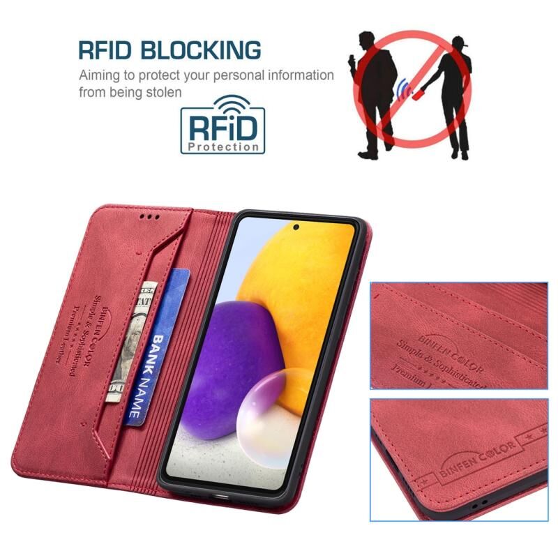 Για Samsung Galaxy A72 5G / 4G Μαγνητικό RFID Blocking Anti-Theft Δερμάτινη θήκη με θήκη & υποδοχές για κάρτες & πορτοφόλι(Κόκκινο)