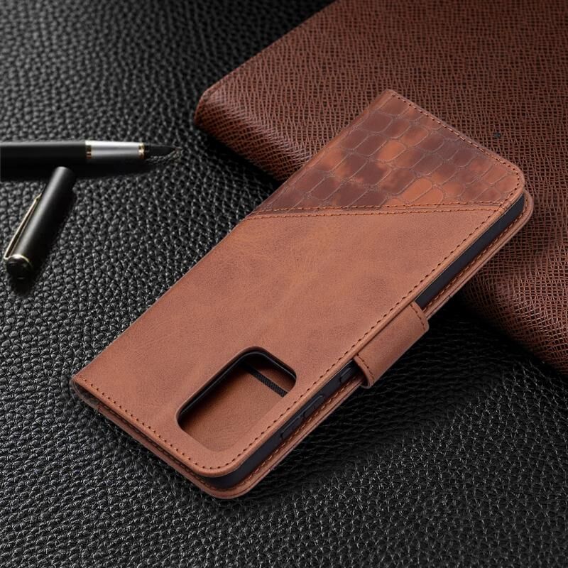 Θήκη Samsung Galaxy A72 5G / 4G με υφή κροκόδειλου, οριζόντια, από δερματίνη PU σε ταιριαστό χρώμα, με πορτοφόλι, βάση & θήκες για κάρτες (Καφέ)