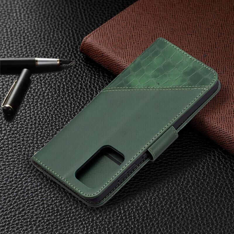 Θήκη Samsung Galaxy A72 5G / 4G με υφή κροκόδειλου, οριζόντια, από δερματίνη PU σε ταιριαστό χρώμα, με πορτοφόλι, βάση & θήκες για κάρτες (πράσινο)