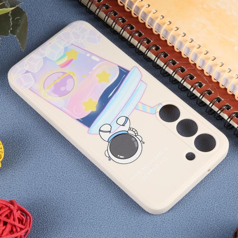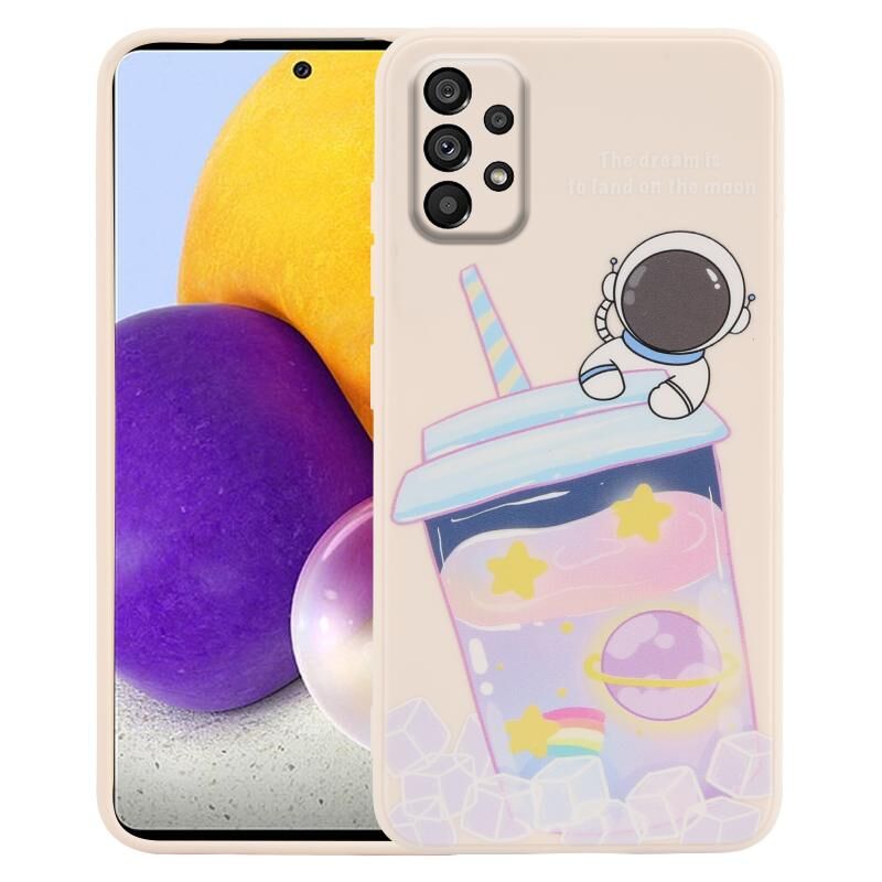 Θήκη σιλικόνης υγρού για Samsung Galaxy A72 5G / 4G με σχέδιο αστροναύτη και γάλα (Λευκό)