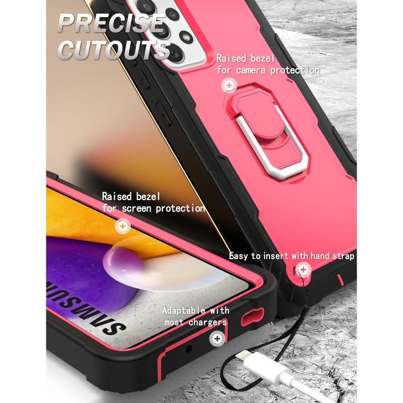 Για το Samsung Galaxy A72 5G / 4G PC + καουτσούκ 3 στρώσεων Αδιάβροχη προστατευτική θήκη με περιστρεφόμενη θήκη (μαύρο + ροζ κόκκινο)