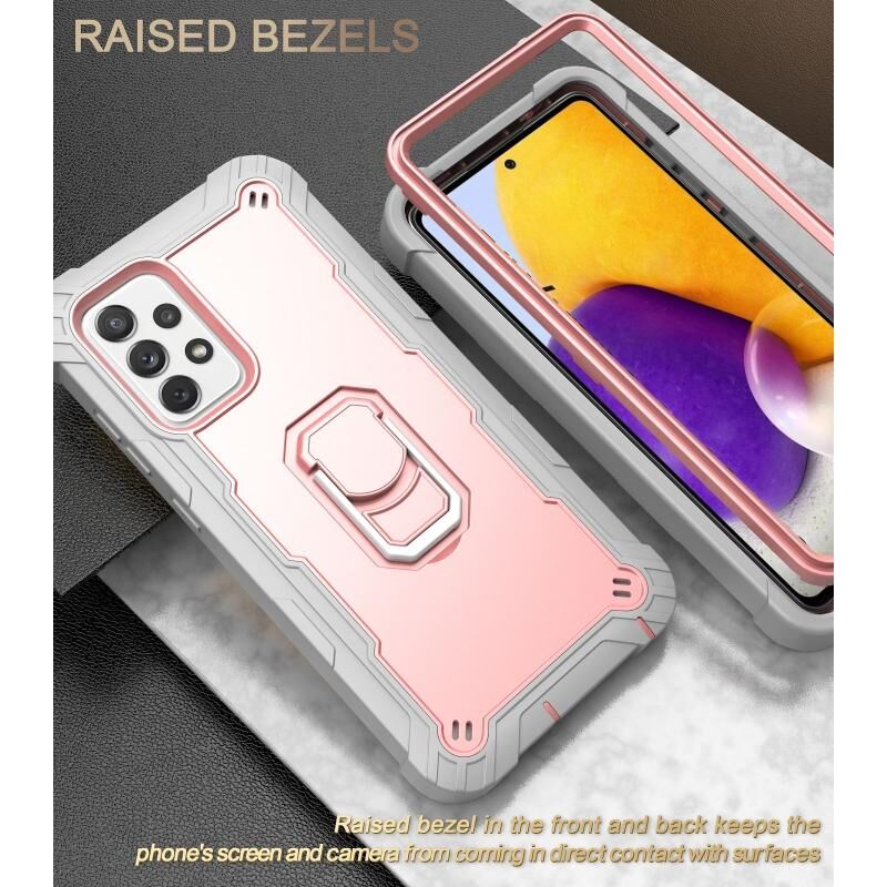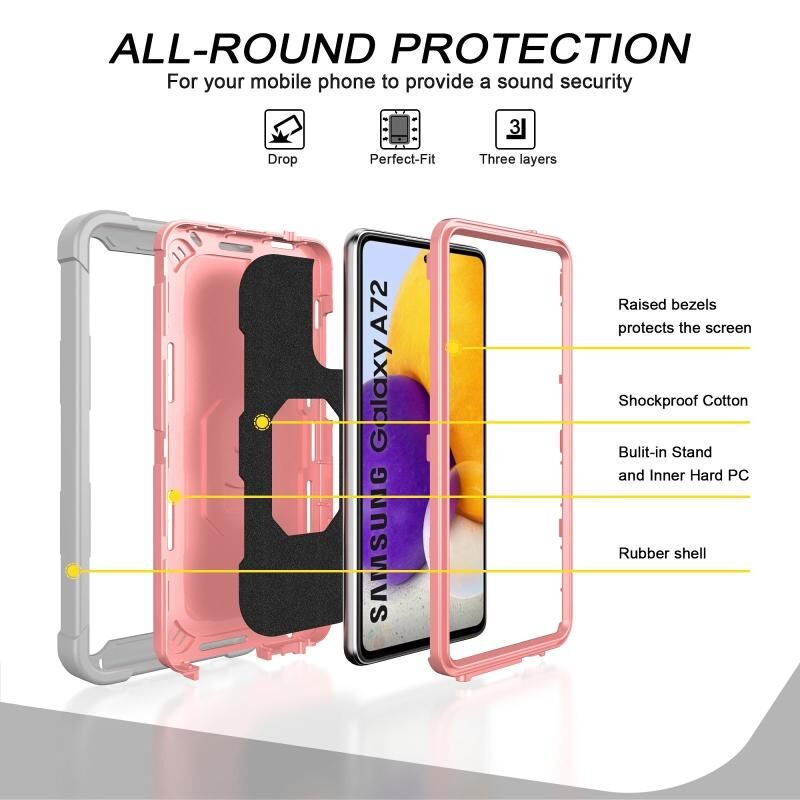 Για το Samsung Galaxy A72 5G / 4G PC + καουτσούκ 3 στρώσεων Αδιάβροχη προστατευτική θήκη με περιστρεφόμενη θήκη (γκρι λευκό + ροζ χρυσό)