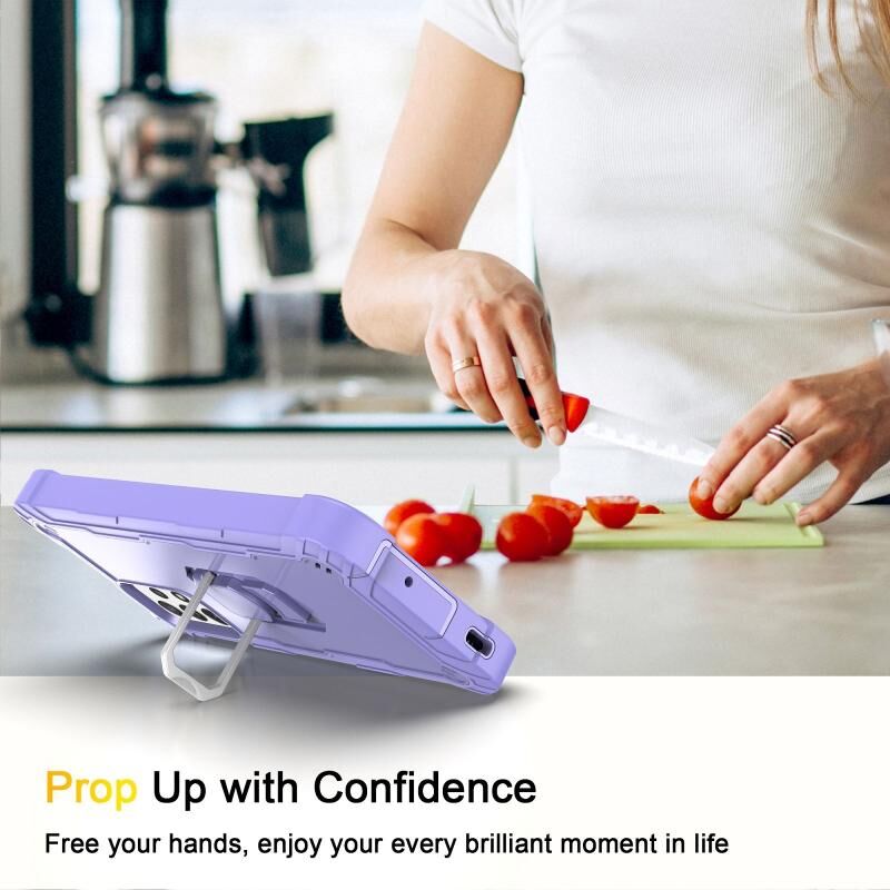 Για το Samsung Galaxy A72 5G / 4G PC + καουτσούκ 3 στρώσεων Αδιάβροχη προστατευτική θήκη με περιστρεφόμενη θήκη (μωβ)
