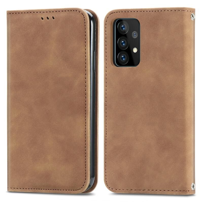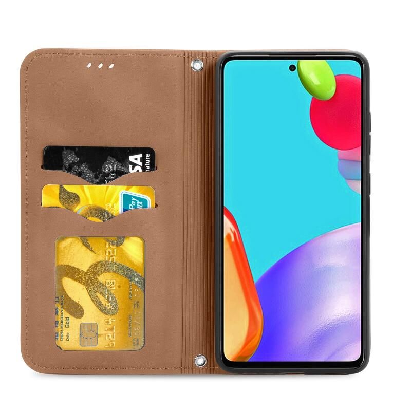 Για το Samsung Galaxy A72 5G / 4G Retro Skin Feel Business μαγνητική οριζόντια Flip δερμάτινη θήκη με υποδοχές για κάρτες & πορτοφόλι & πλαίσιο φωτογραφιών (Καφέ)