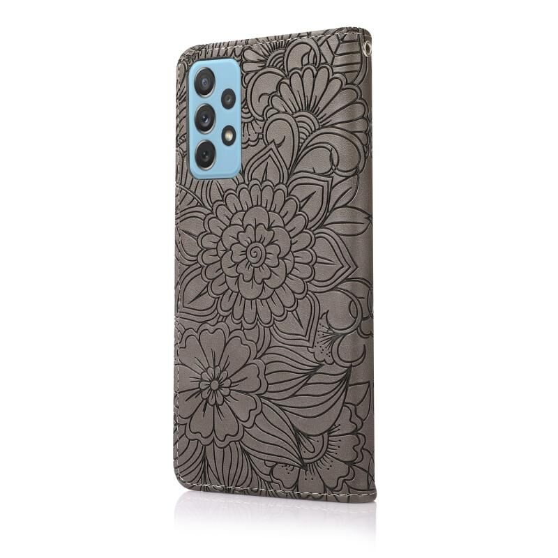 Για Samsung Galaxy A72 5G / 4G Skin Feel ανάγλυφο ηλιοτρόπιο οριζόντια Flip δερμάτινη θήκη με υποδοχές για κάρτες & θήκες & πορτοφόλι & κορδόνι (γκρι)