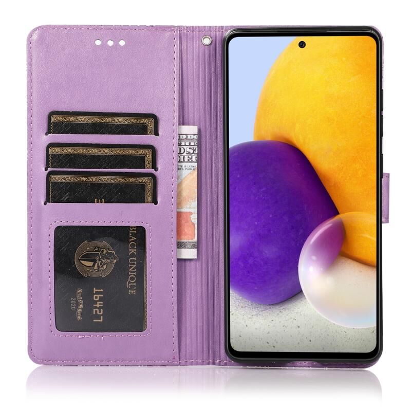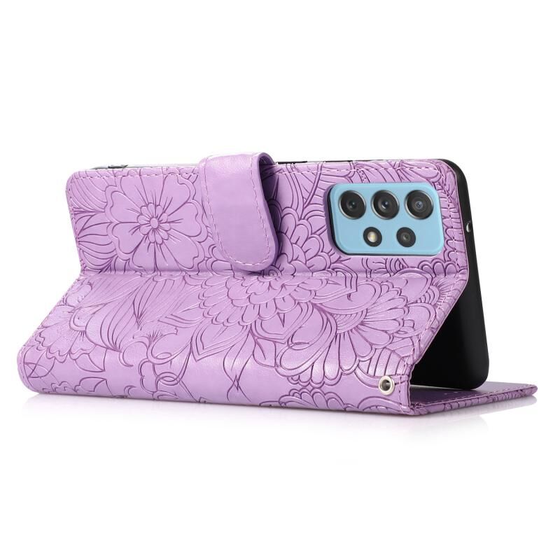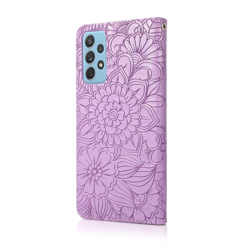 Για Samsung Galaxy A72 5G / 4G Skin Feel ανάγλυφο ηλιοτρόπιο οριζόντια Flip δερμάτινη θήκη με υποδοχές για κάρτες & θήκες & πορτοφόλι & κορδόνι (μωβ)