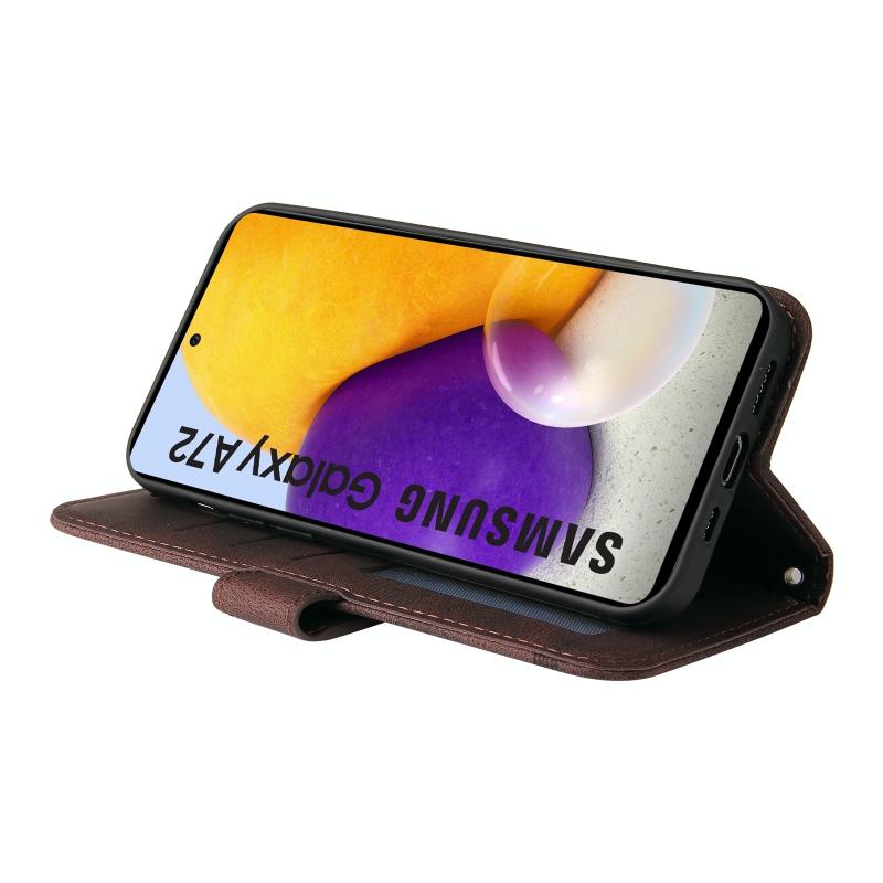 Θήκη δέρματος οριζόντιας αναδίπλωσης για Samsung Galaxy A72 5G / 4G με αίσθηση δέρματος, σχέδιο Δέντρο της Ζωής, μεταλλικά κουμπιά, με βάση, θήκη καρτών, πορτοφόλι, κορνίζα φωτογραφιών & λουρί (Καφέ)