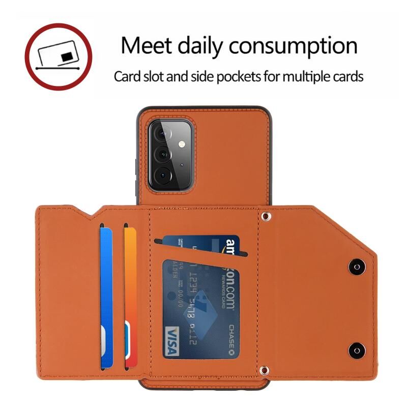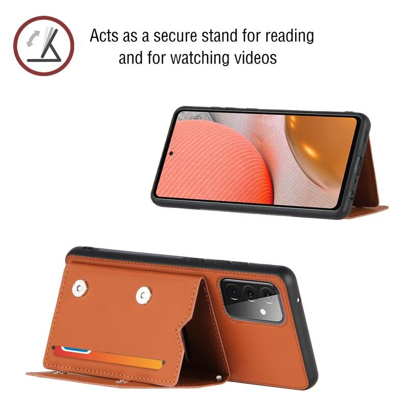 Για Samsung Galaxy A72 5G / 4G δέρμα αίσθηση PU + TPU + PC πίσω κάλυμμα Αδιάβροχη θήκη με υποδοχές καρτών & κάτοχος & πλαίσιο φωτογραφιών (καφέ)