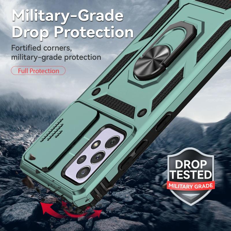 Θήκη κινητού τηλεφώνου με συρόμενο προστατευτικό κάμερας Camshield για Samsung Galaxy A72 5G / 4G (Σκούρο πράσινο)