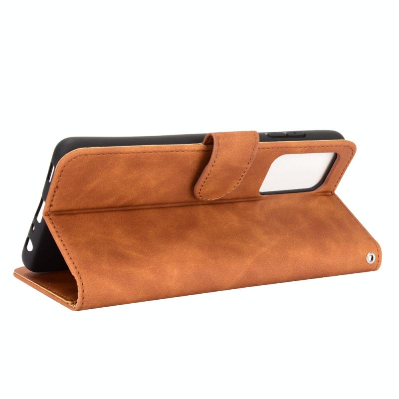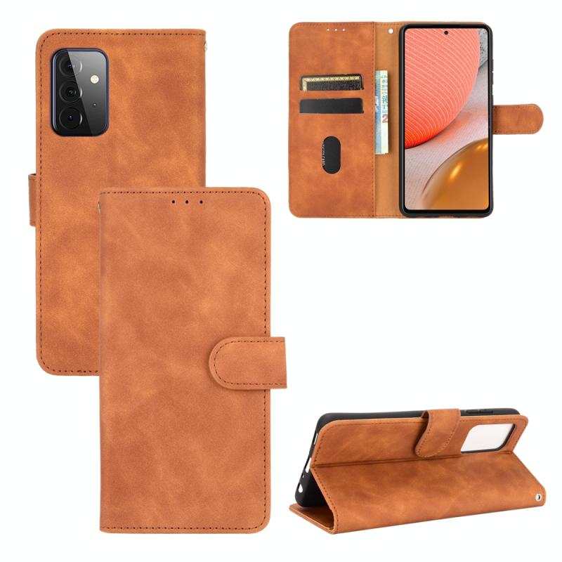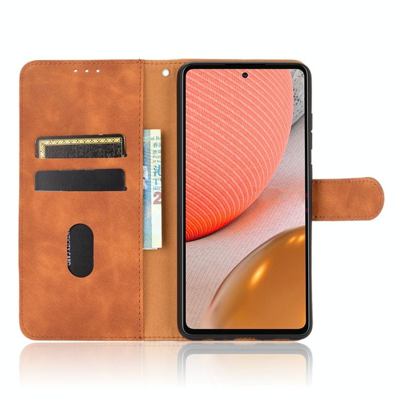 Θήκη για Samsung Galaxy A72 5G / 4G με μαγνητικό κούμπωμα, οριζόντια, με υφή δέρματος μοσχαριού, από PU δέρμα σε μονόχρωμο χρώμα, με βάση & θήκες για κάρτες & πορτοφόλι (Καφέ)
