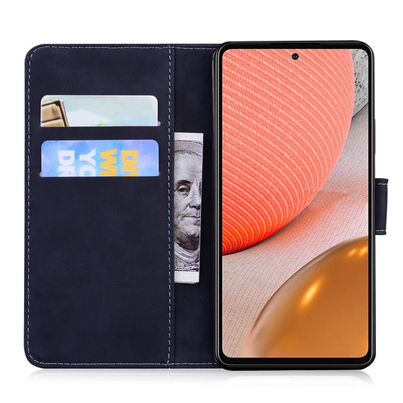 Θήκη δέρματος οριζόντιας αναδίπλωσης με ανάγλυφο μοτίβο τίγρης για Samsung Galaxy A72 5G / 4G με βάση & υποδοχές καρτών & πορτοφόλι (Μαύρο)