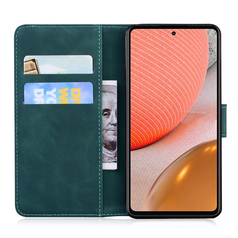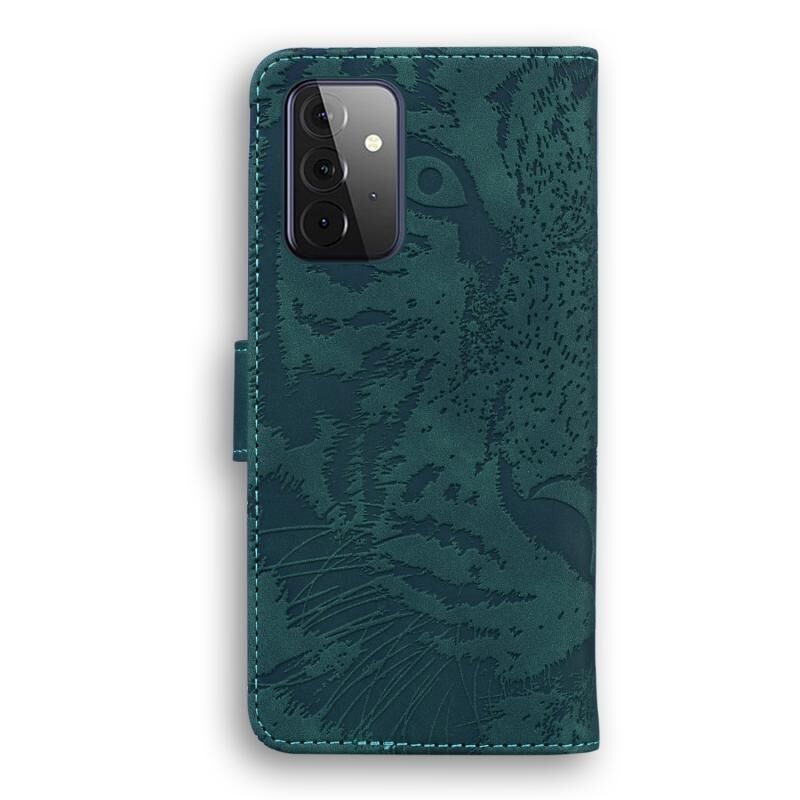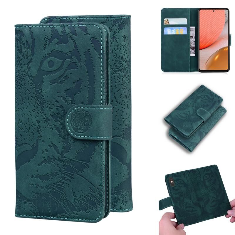 Θήκη δέρματος οριζόντιας αναδίπλωσης με ανάγλυφο μοτίβο τίγρης για Samsung Galaxy A72 5G / 4G με βάση & υποδοχές καρτών & πορτοφόλι (πράσινο)