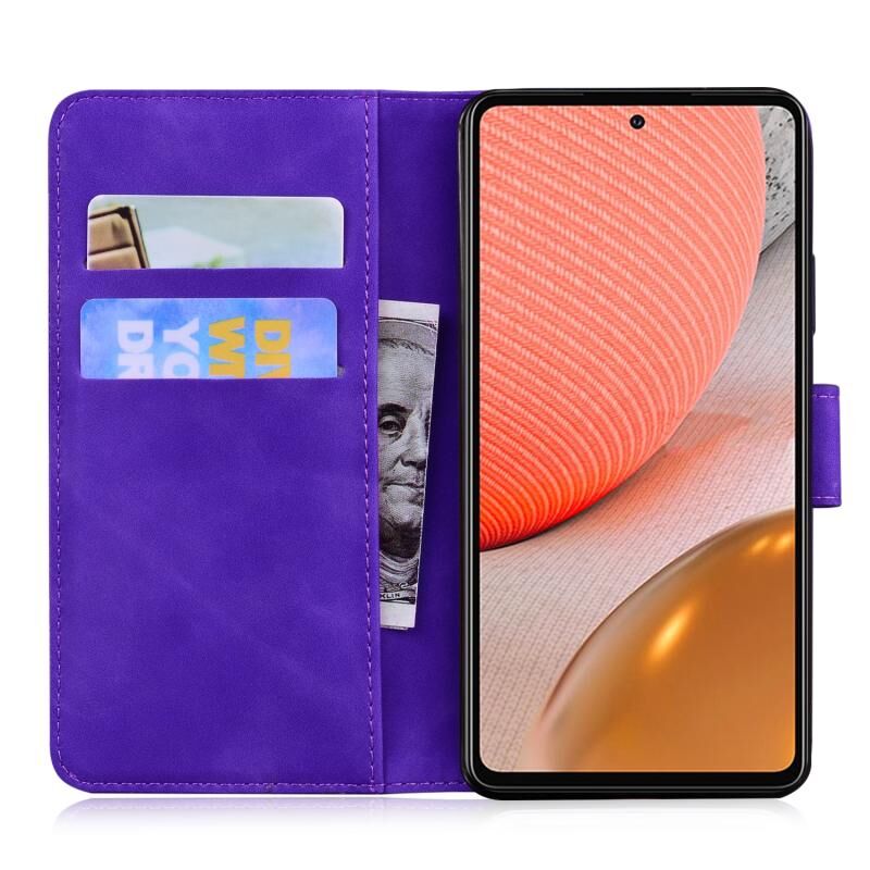 Θήκη δέρματος οριζόντιας αναδίπλωσης με ανάγλυφο μοτίβο τίγρης για Samsung Galaxy A72 5G / 4G με βάση & υποδοχές καρτών & πορτοφόλι (Μωβ)