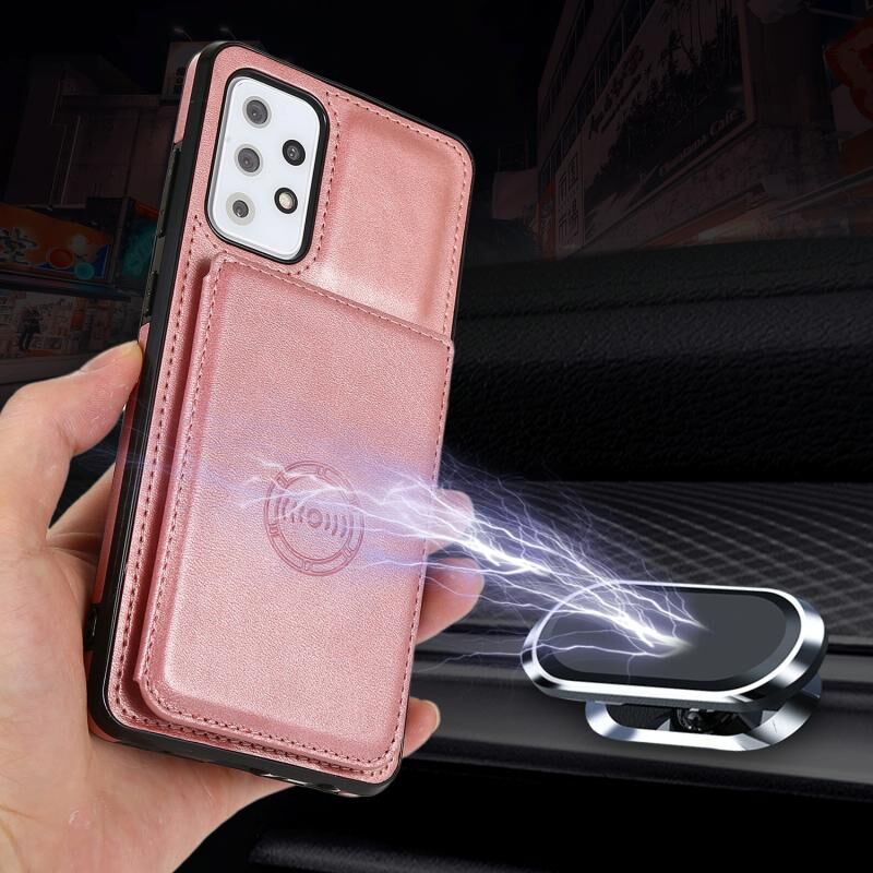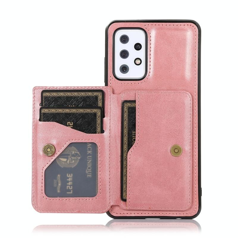 Για Samsung Galaxy A72 5G 5G Calf υφή μαγνητική κάρτα τσάντα PU υπόθεση τηλεφώνου (Ροζ χρυσός)